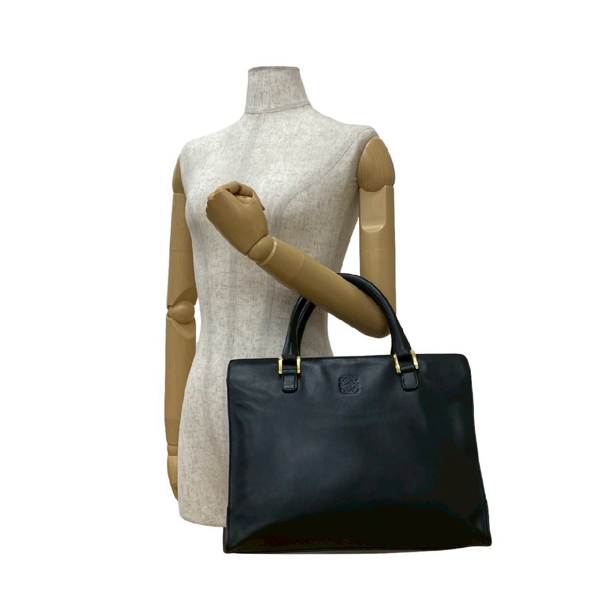 極 美品 LOEWE ロエベ アナグラム ロゴ 金具 刻印 レザー 本革 ハンドバッグ ミニ トートバッグ ビジネスバッグ ブラック 黒 37186