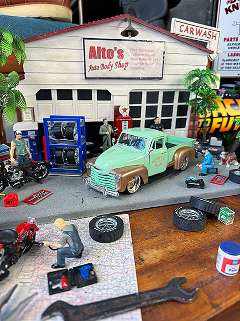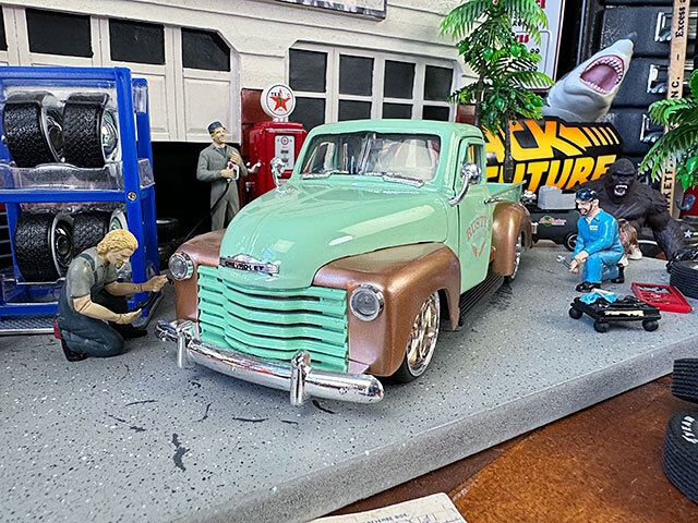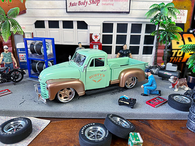 ミニカーはこの56年式F-100で決まりだから、あとは当時の映画モノだとか、色んなネタを組み合わせてオリジナルの50年代を作ってみては!