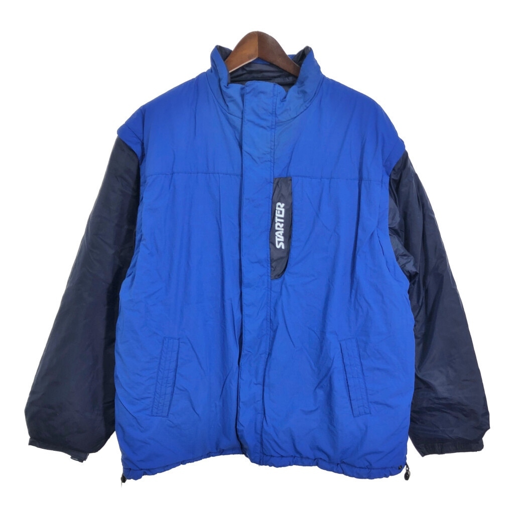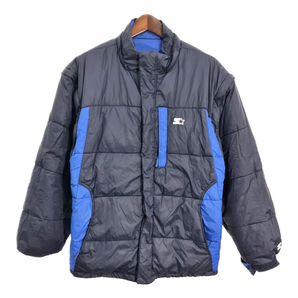 | 【商品管理番号】 R6475 【ブランド】 STARTER/スターター 【サイズ】 XL 【実寸サイズ】 肩幅:約61cm 着丈:約76cm 身幅:約71cm 袖丈:約63cm 【主な素材】 表地 : ナイロン 裏地 : 13848 中綿 : 55214 【色】 ネイビー 【仕様】 90年代 リバーシブル フード取り外し可能、裾ドローコード 【状態】 特記事項: ベルクロストラップ破損 | |||