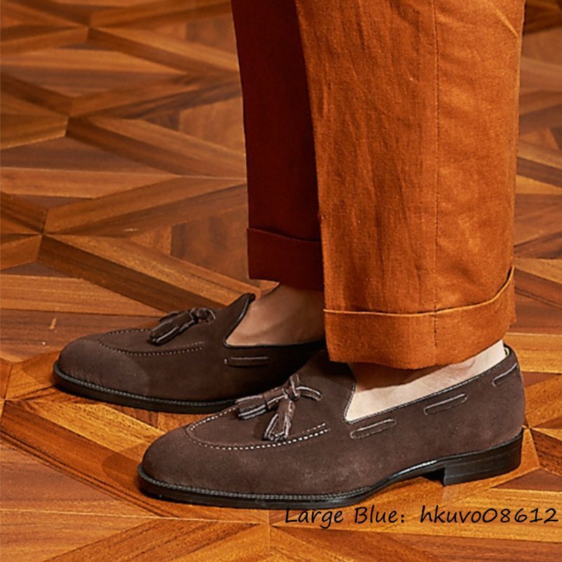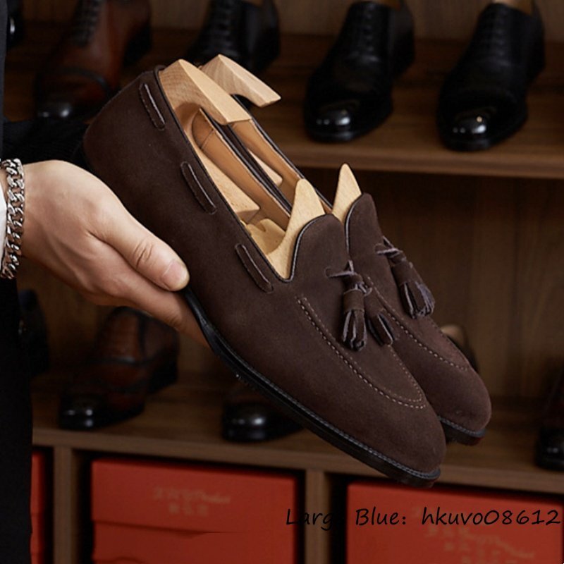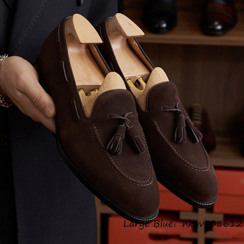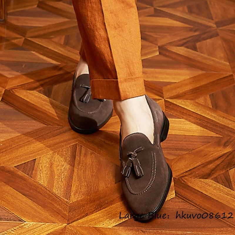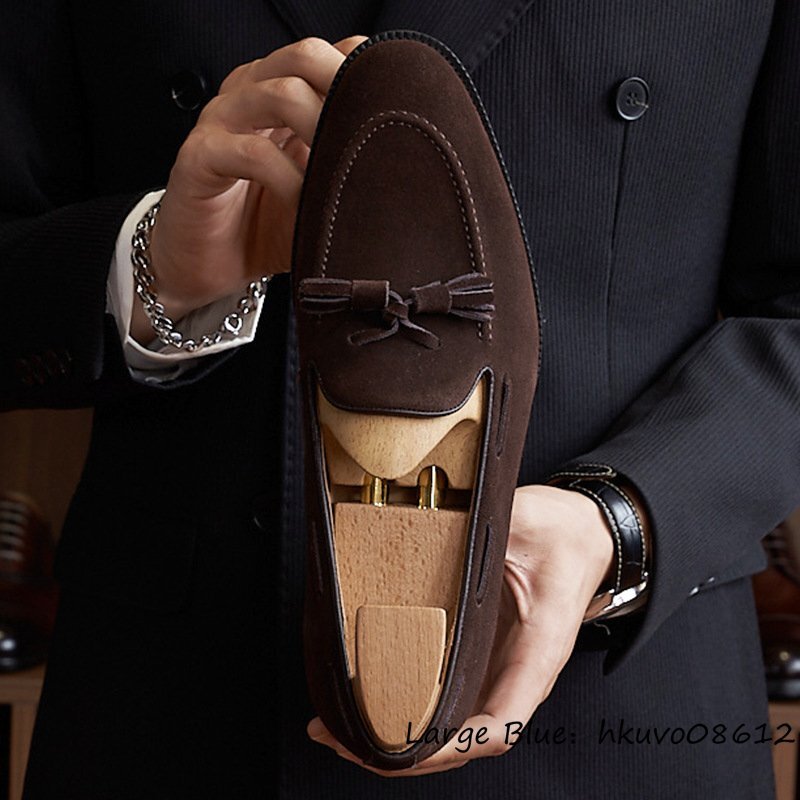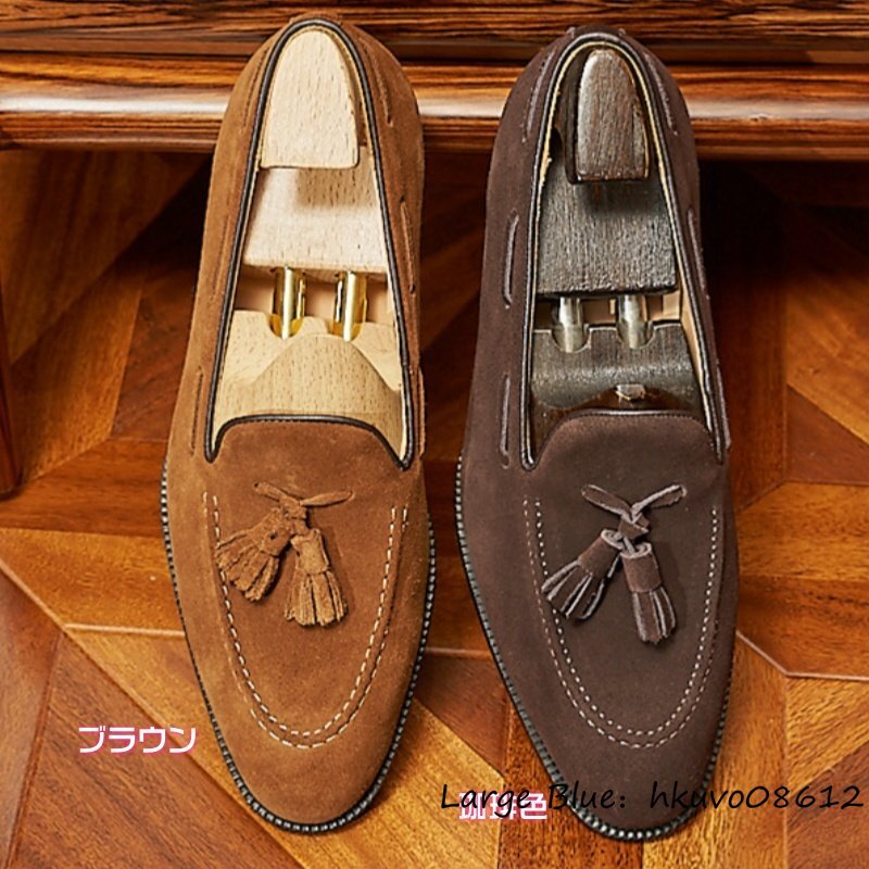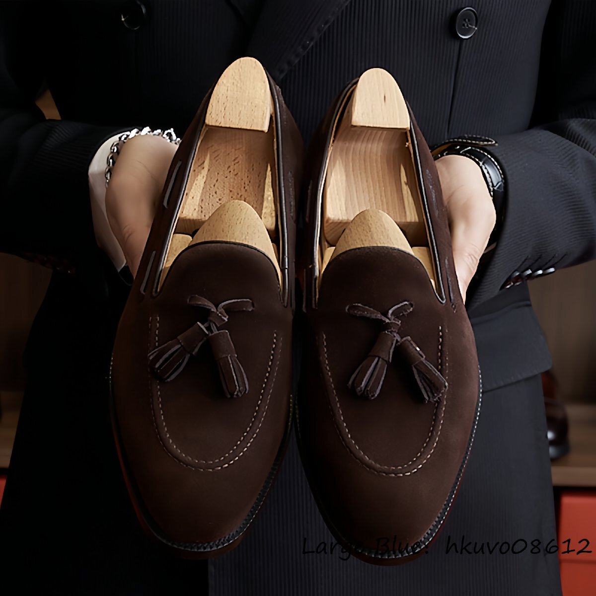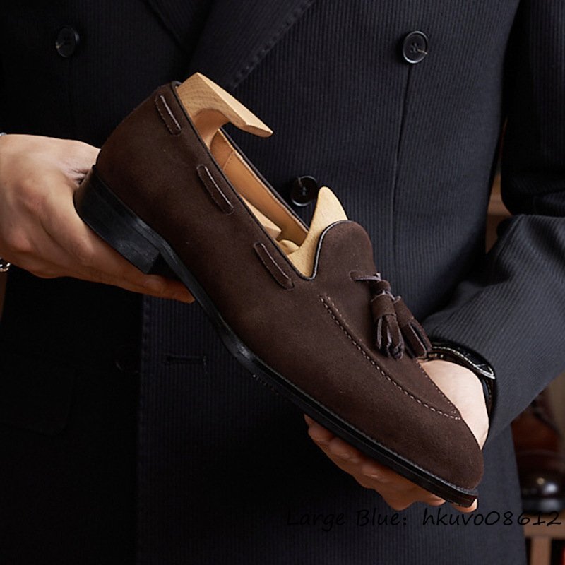 最上級*入手困難 スエード革 レザーシューズ ビジネスシューズ 職人手作り 本革 紳士靴 革靴 牛革 タッセル ローファー 珈琲色 27.5cm