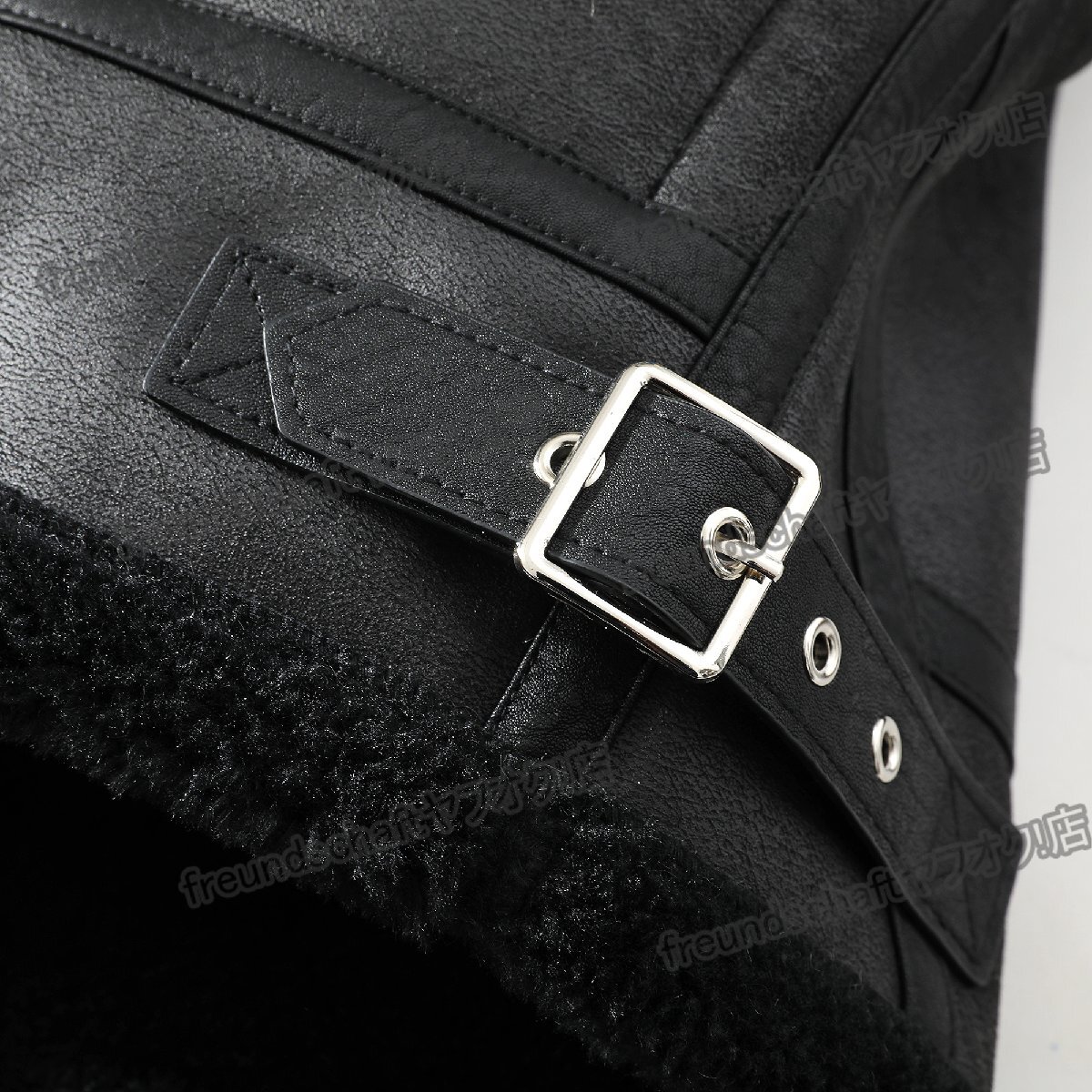 生地にはポリエステル90%のフェイクレザーを使用。ほどよいツヤとしなやかな質感があり、見た目にも手触りにも上品さがあります。内側には柔らかな起毛素材を採用し、寒い日も暖かく快適な着心地。軽くて動きやすく、デイリー使いに最適です。