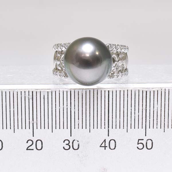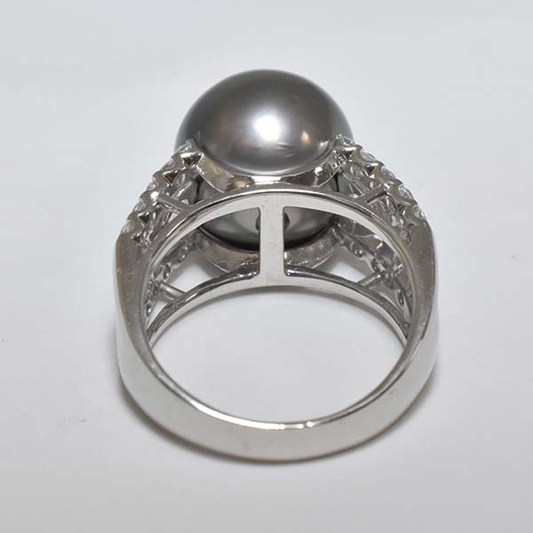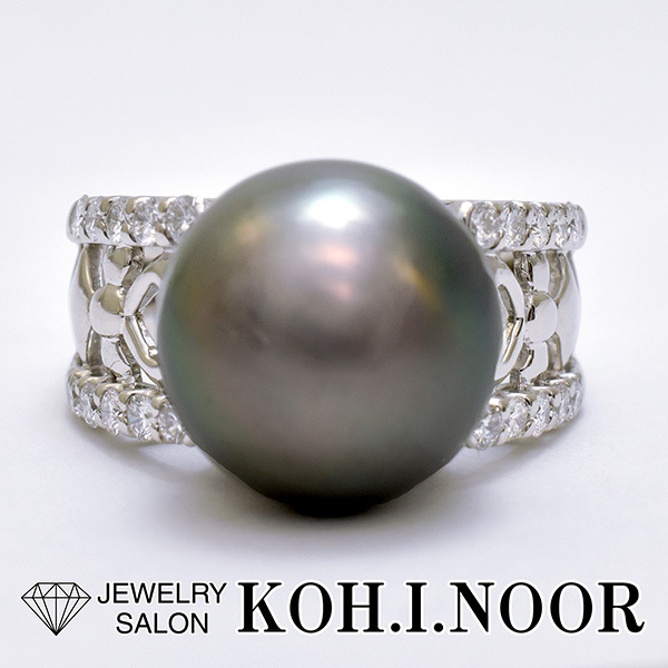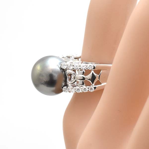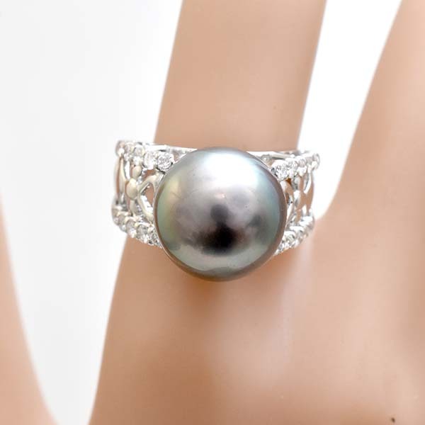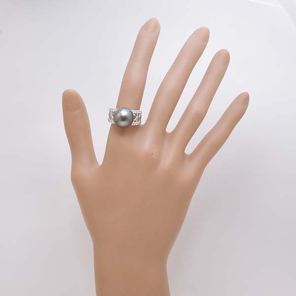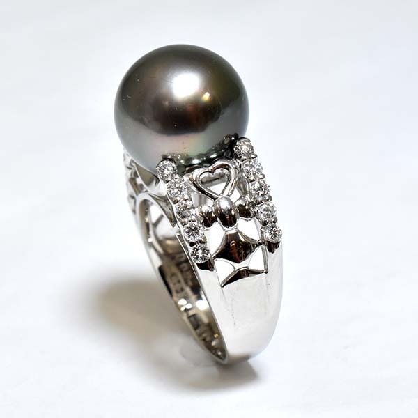 ブラックパールをメインにしたプラチナ製のファッションリング。