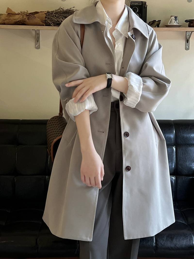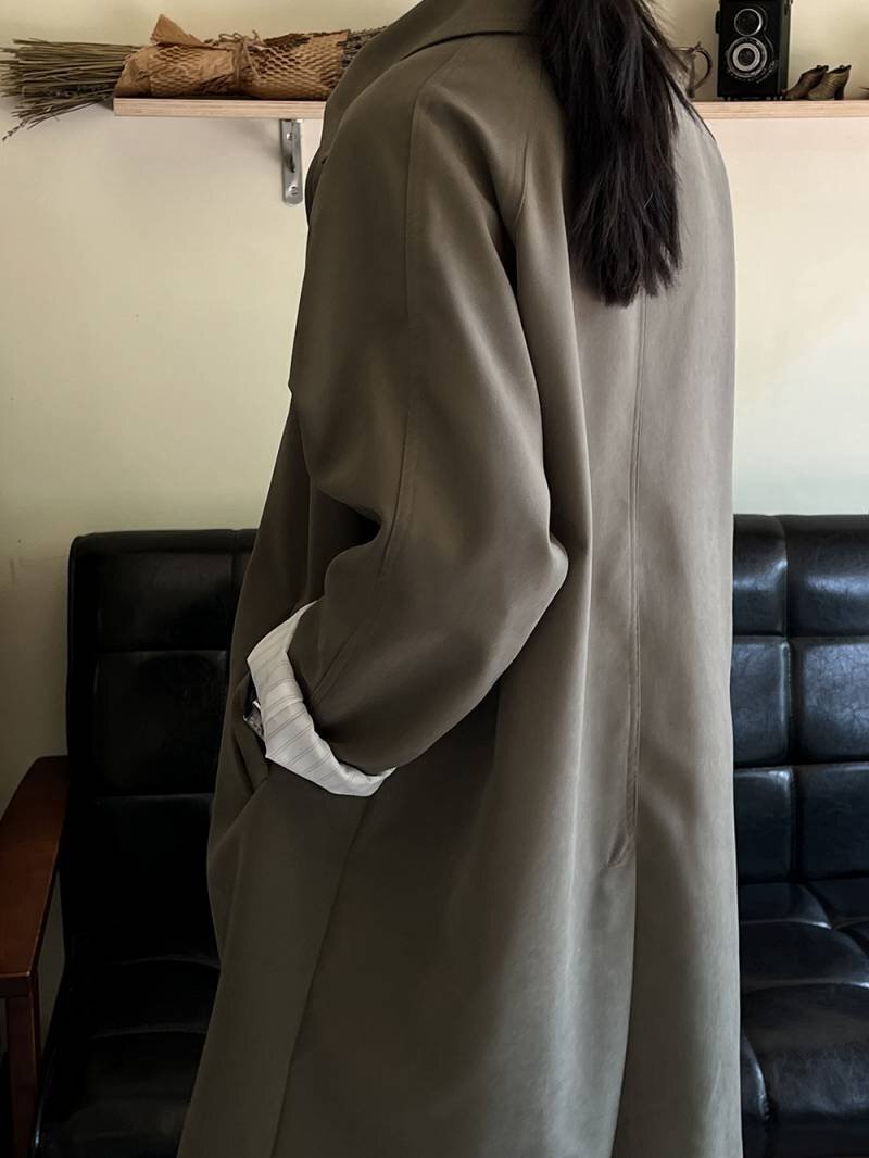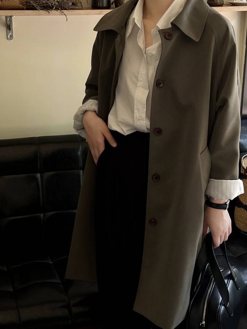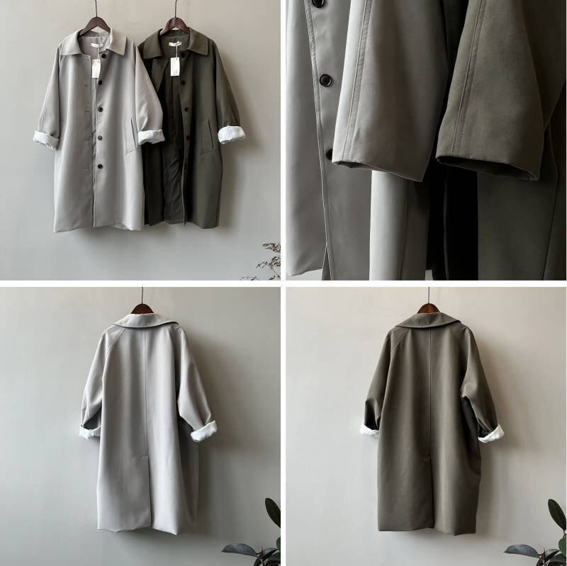 ・適度のハリ感と光沢があるシワになりにくい上質素材のステンカラートレンチコートです。