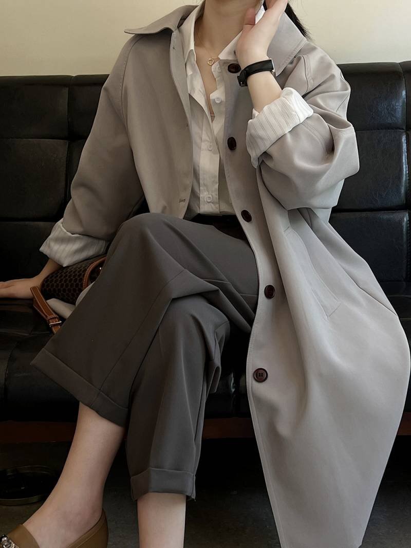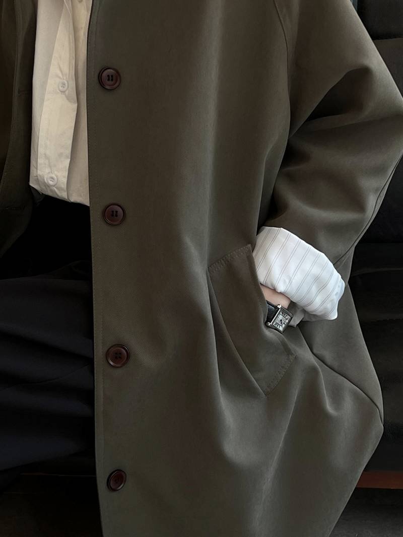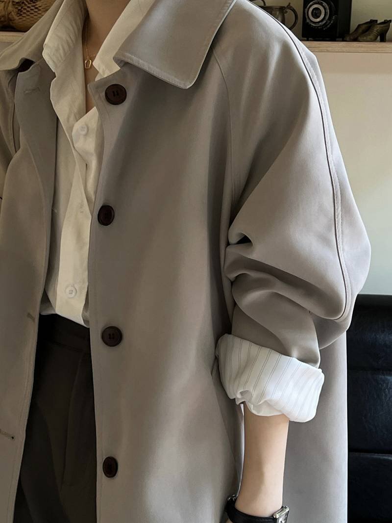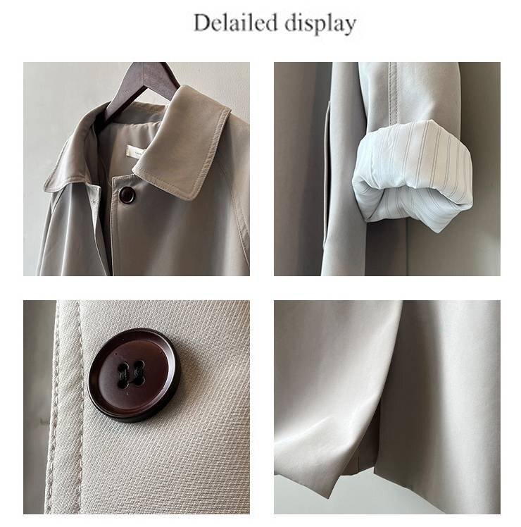 ・適度のハリ感と光沢があるシワになりにくい上質素材のステンカラートレンチコートです。