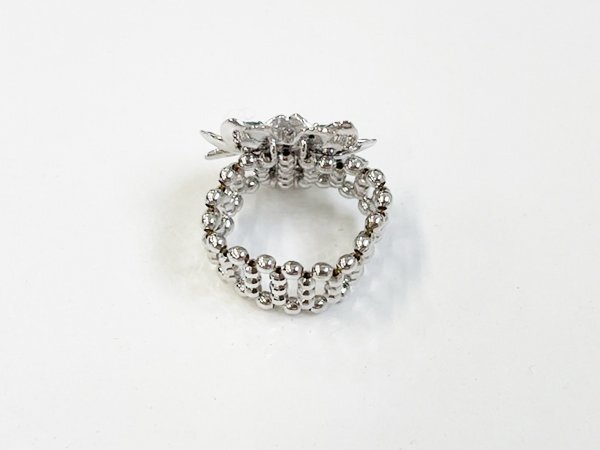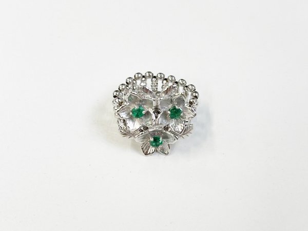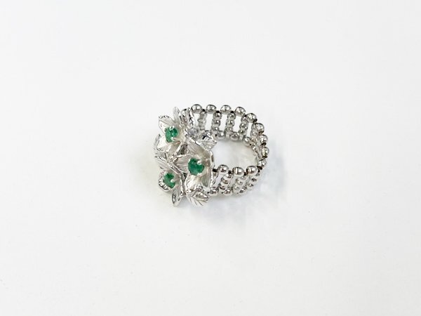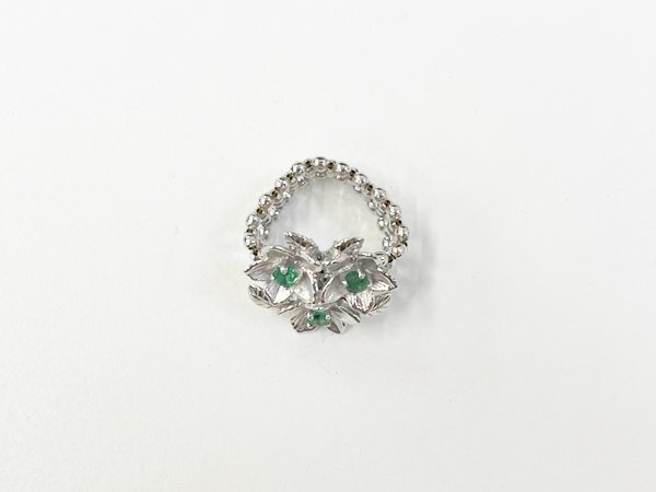 指輪 リング K18 WG 金 エメラルド フラワー モチーフ 花 プレシャスストーン/ホワイトゴールド×グリーン/10~12号/1円スタート/AY
