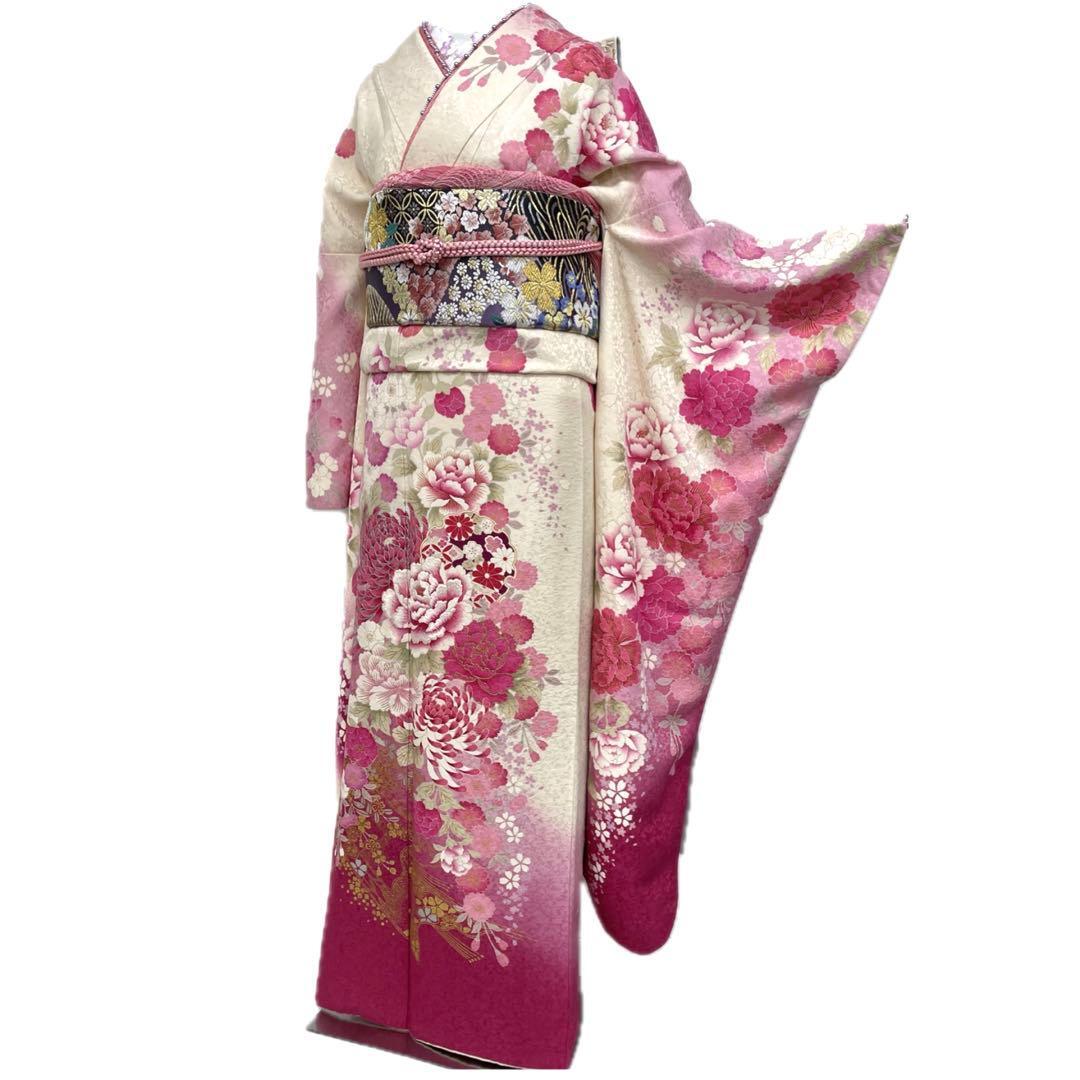 華やかな牡丹や桜が咲き誇る、優美なピンクグラデーションの振袖。