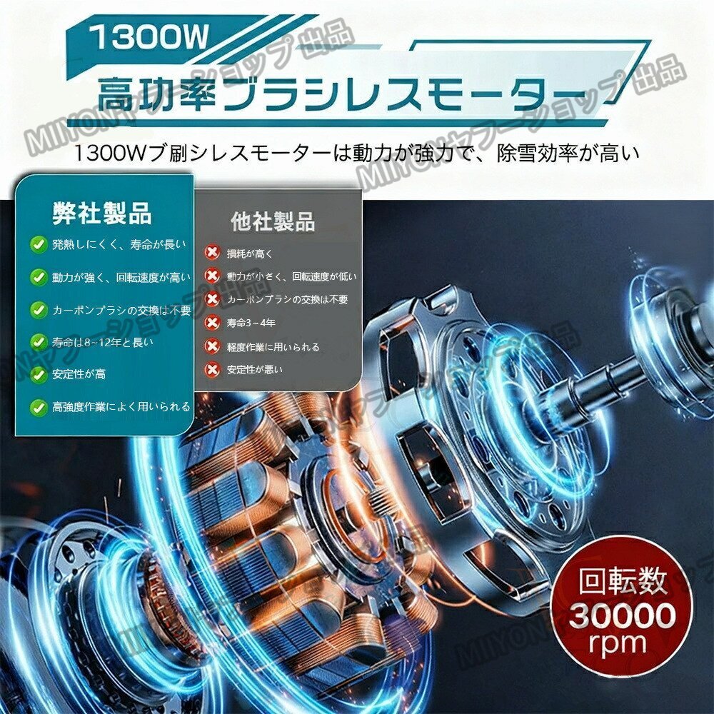 【高品質の素材】 この電動除雪機は高品質なABSシェルとアルミニウム合金のプッシュロッドを採用し、耐久性と軽量性を両立しています。強力なブラシレスモーター回転数は最大4000 rpmで、雪の日でも様々な積雪問題に簡単に対処でき、楽に除雪を行い、冬の楽しみを存分に味わえます。