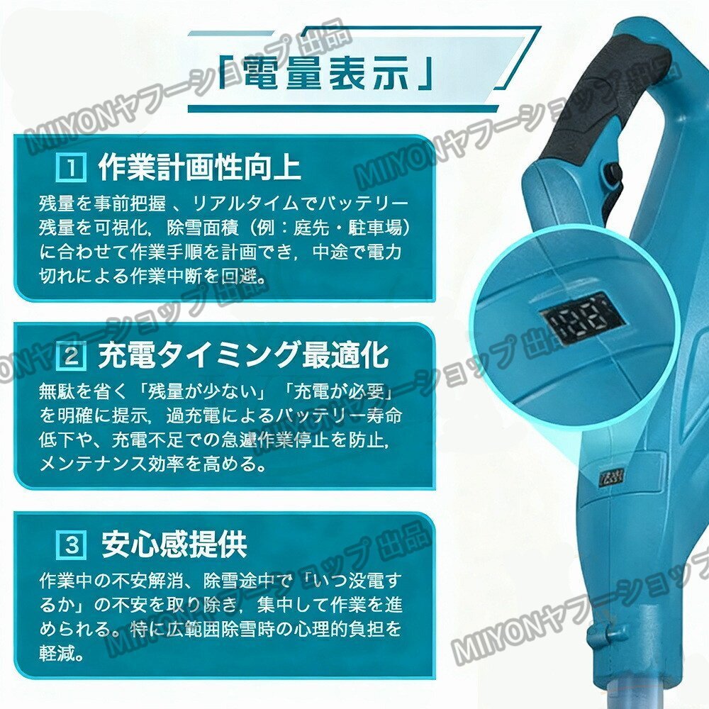 【3.0AH大容量バッテリー】 新型除雪機はパワー表示を搭載し、さらに使いやすくなりました。電動除雪機 は3.0Ahの大容量バッテリーを搭載しています。 高性能バッテリーを搭載した 除雪 車は長時間駆動が可能で、バッテリー持続時間は35分となっており、一度の充電で長時間の 除雪 作業が可能です。 これにより、使用の自由度が高まるだけでなく、使用中に頻繁に充電する必要がなくなり、より便利な使用体験が得られます。