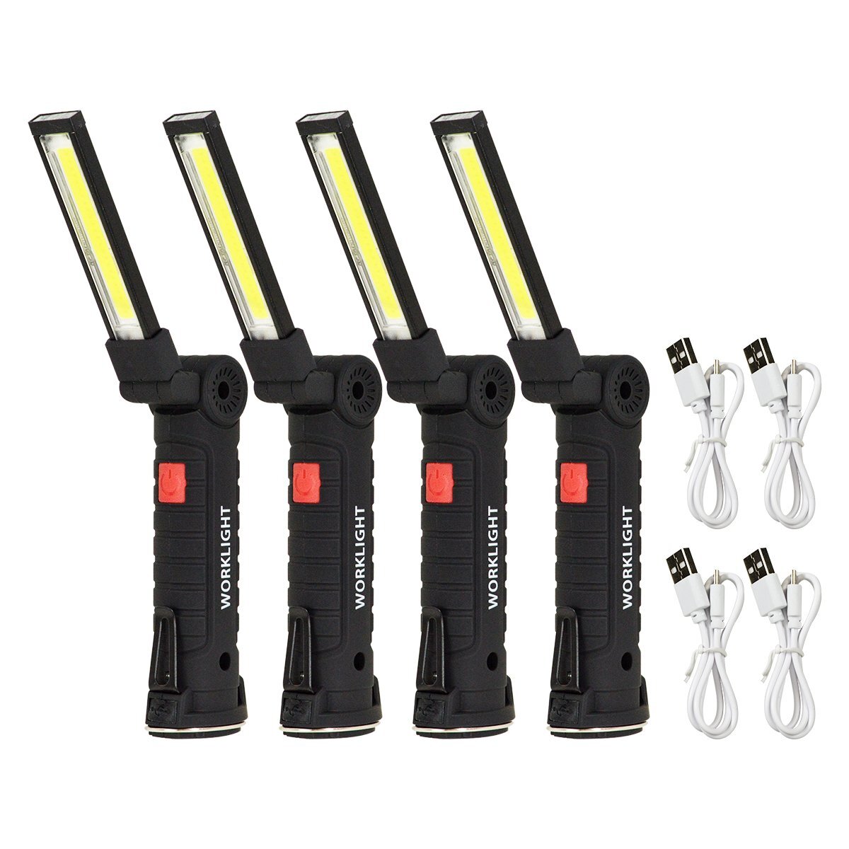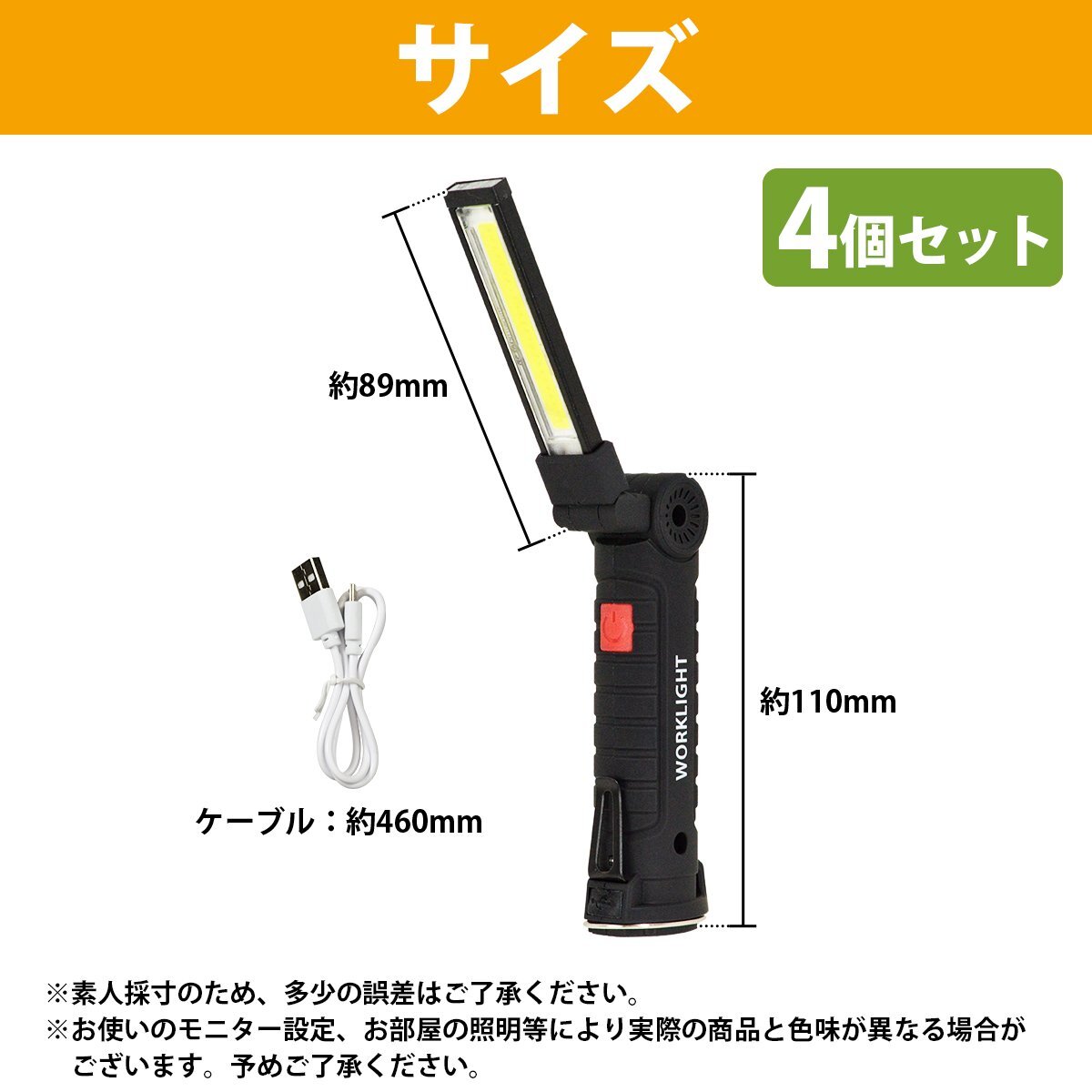 【送料無料】4個セット LEDライト COB LED 作業灯 防水 360度 回転 折畳み式 USB 充電式 懐中電灯 マグネット 多機能 ワークライト