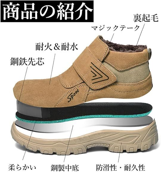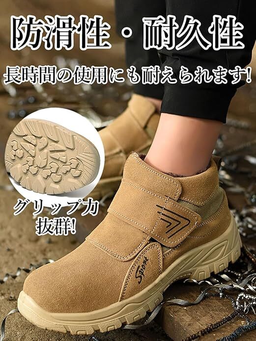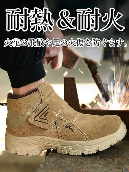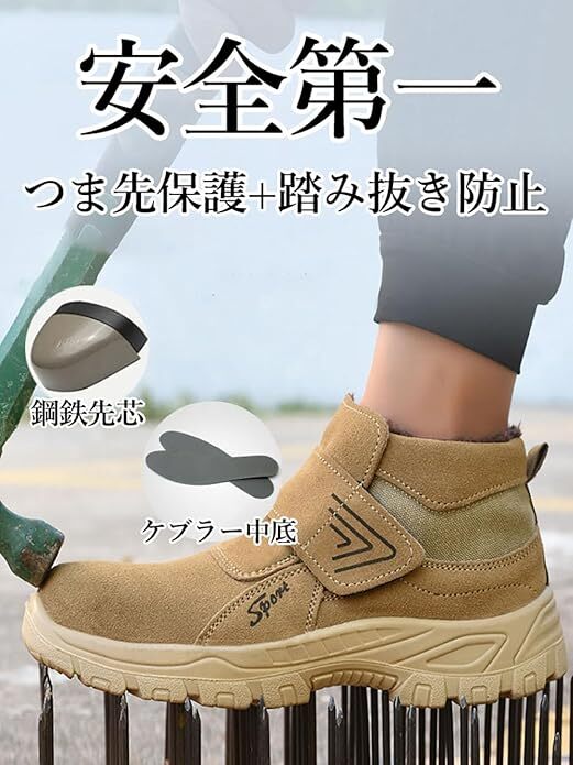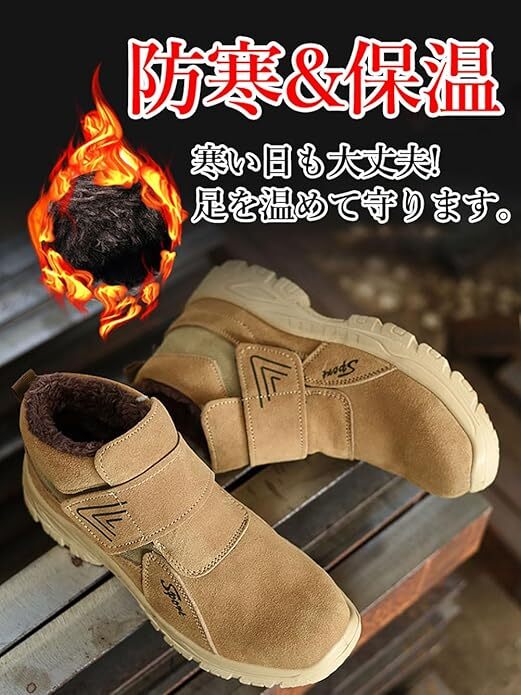 防寒安全靴 冬用 ハイカット 作業靴 軽量 裏起毛 耐水 革 鋼先芯入り 踏み抜き防止 耐熱 耐火 厚底 サイズ:25cm