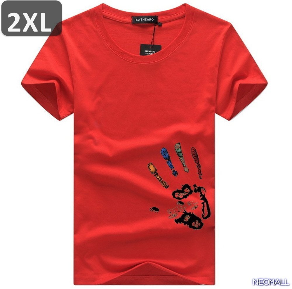 夏の定番 ☆ 丸首 半袖 Tシャツ【457】 レッド 2XLサイズ トップス シャツ シンプル イラスト デザイン 春夏