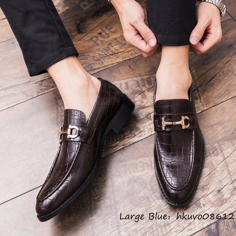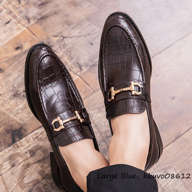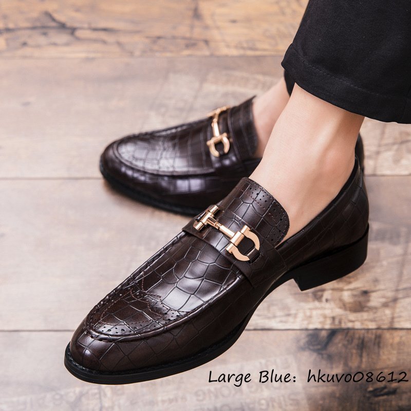 新品特売★メンズ 鰐柄 ローファー スリッポン 職人手作り レザーシューズ ビジネスシューズ イギリス風 牛革 革靴 通勤 ブラウン 28.0cm