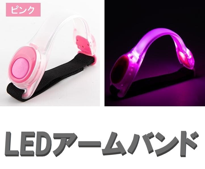 ☆送料コミコミ☆LED アームバン ド ピンク 2個セット ランニング ジョギ ング 夜間 点滅 電池式 高輝度 トレーニング 運動 反射バンド