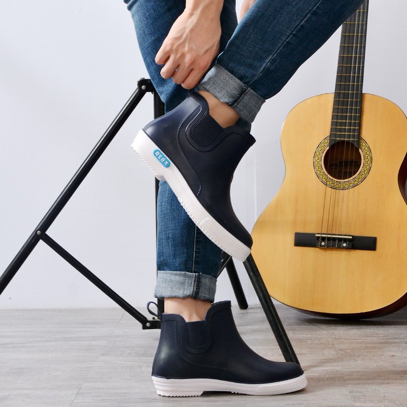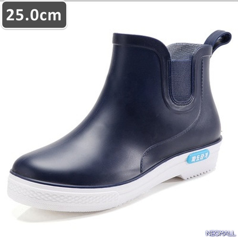 雨対策 ☆【486】メンズ レインシューズ ネイビー×ホワイト 25.0cm オシャレ ショートブーツ シンプル 梅雨 雨 長靴 雨靴 防水