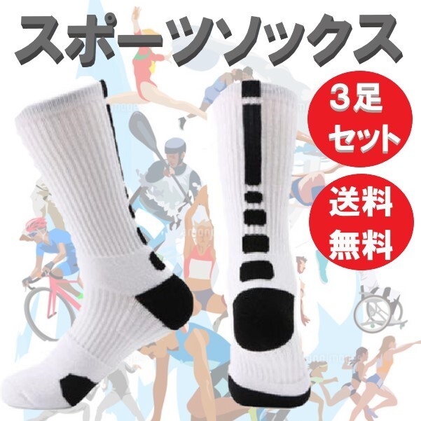 送料コミコミ☆ スポーツソックス ホワイト×ブラック 3足セット 中厚地 アウトドア ウォーキング トレッキング メ ンズ 靴下