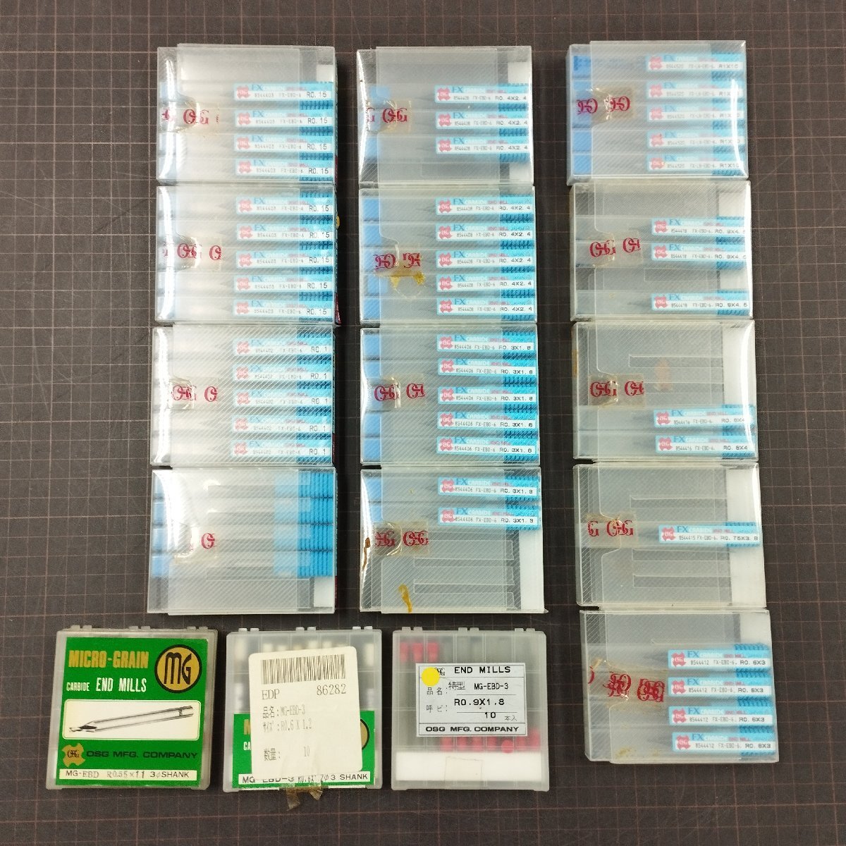 【is396】OSG エンドミル R0.1 0.15 1.3×1.8 0.9×4.5等 FXエンドミル FX-EBD-6 ボールエンド形 不揃い 保管品 まとめ