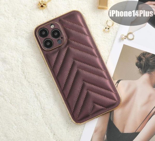 iPhone14Plus ケース パープル キルティング おしゃれ スマホケース スマホカバー 耐衝撃 衝撃吸収【n319】