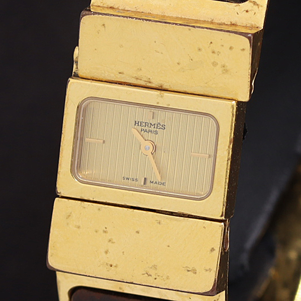 1円 保/箱付 エルメス ロケ L01.201 1081372 QZ ゴールド文字盤 レディース腕時計 8948000 11OKT SMZ