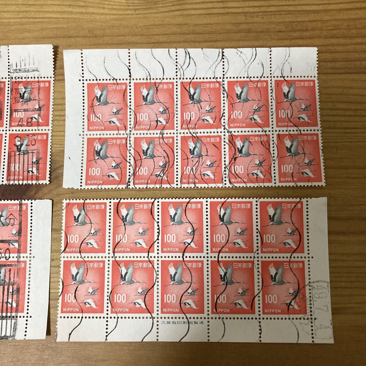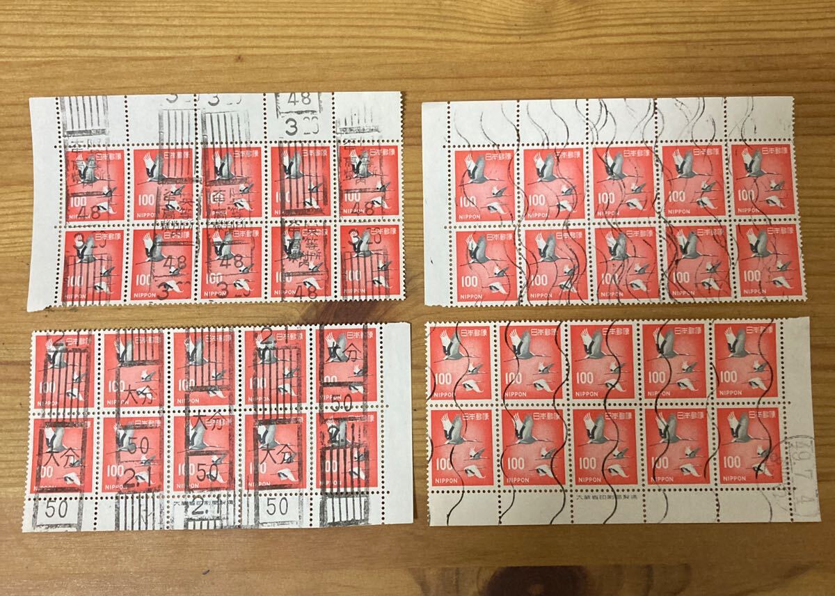 【ローラー印、波消し印、銘版付き】切手 タンチョウヅル 丹頂鶴 100円 10枚ブロック 4セット