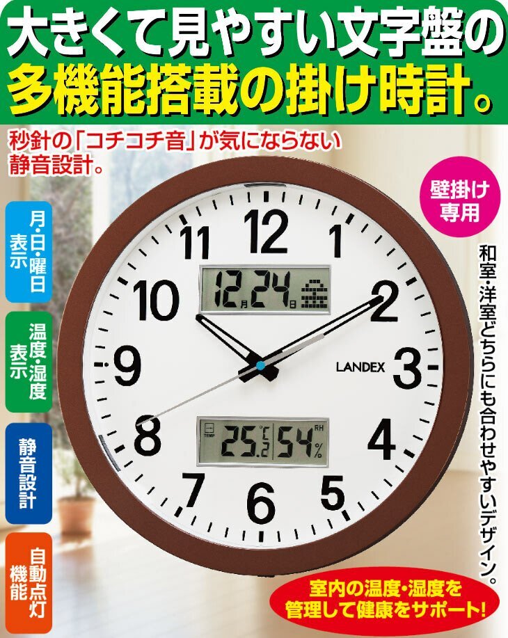 | 即決可@新品温湿度計付き多機能掛け時計 | ||||||||||||