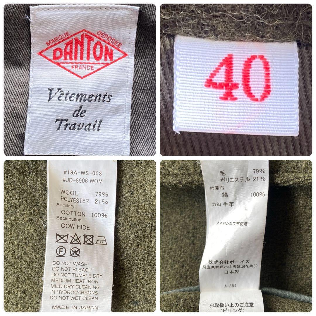 DANTON ダントン ウール モッサ コート M ダーク グリーン 40 刺繍 ロゴ ワーク メンズ アウター ジャケット メルトン カーキ 秋 冬 緑