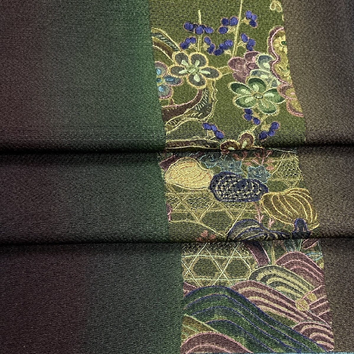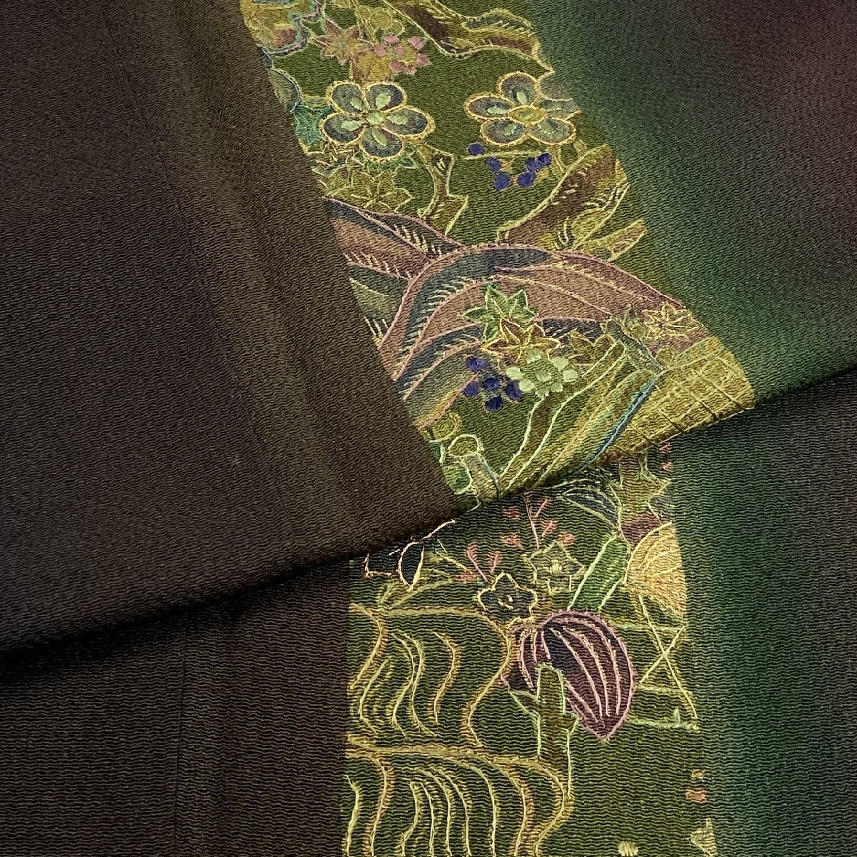 着物月花 総刺繍 仙頭刺繍 蘇州刺繍 ぼかし染 艶やかな花 付下げ 正絹 金糸 共八掛 ki6707