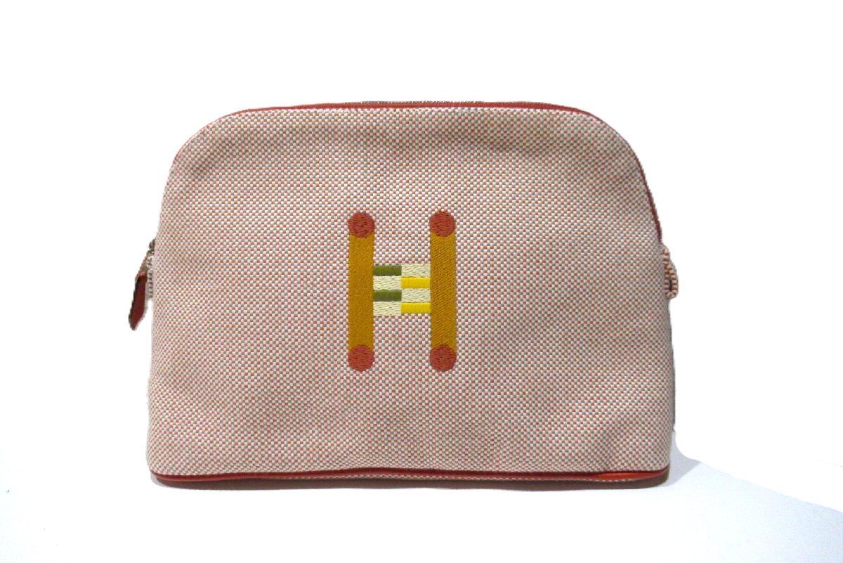 【新品】 エルメス HERMES ボリード ポーチ クレイジーH MM キャンバス オレンジ 小物入れ BRB・バッグ・財布