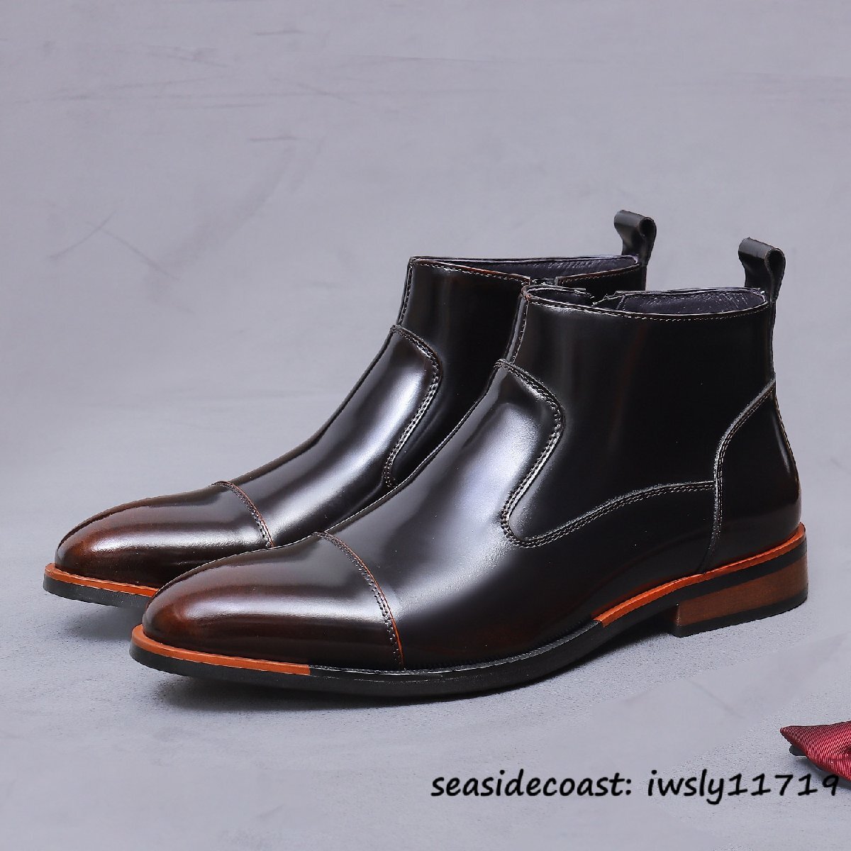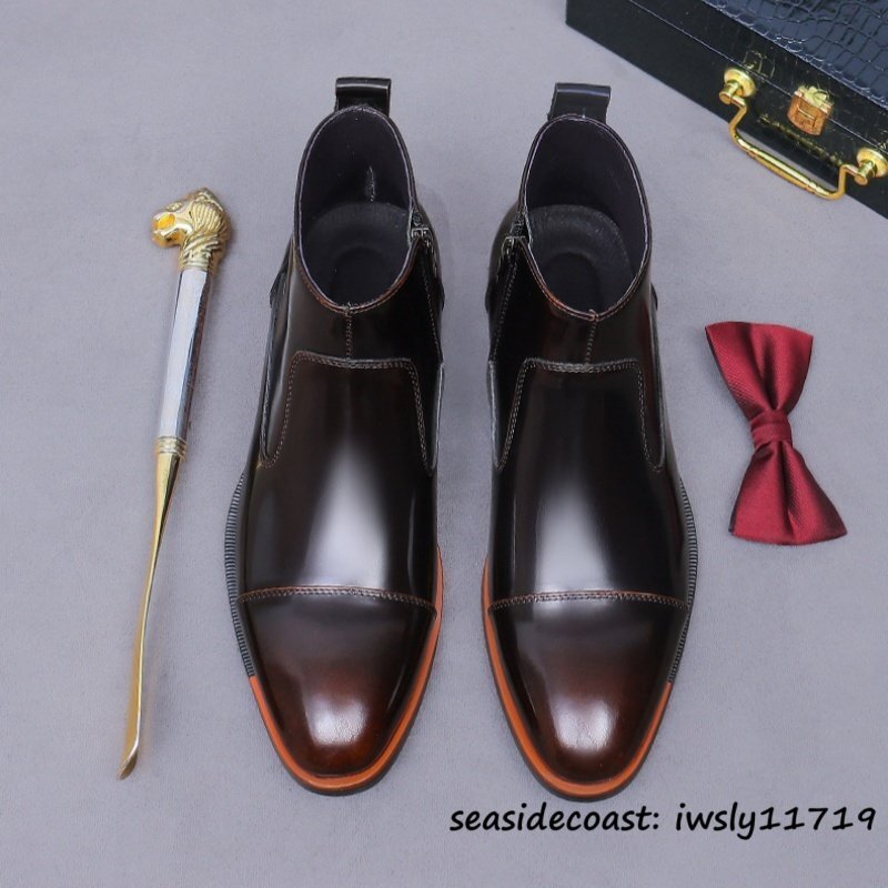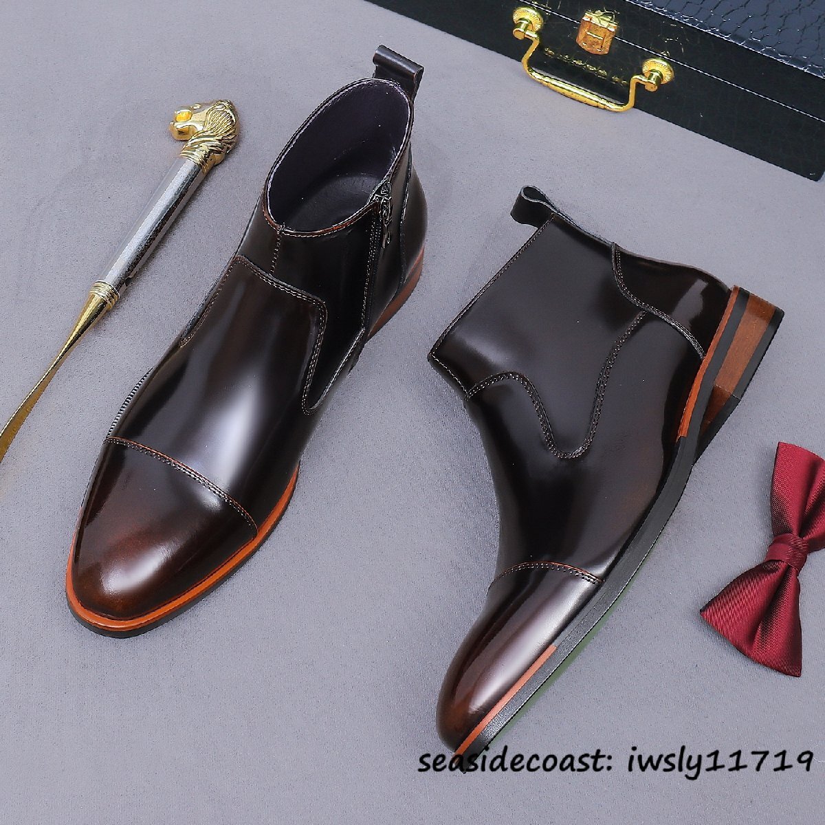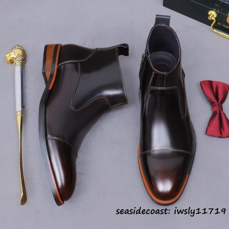 定価16万■メンズブーツ チェルシーブーツ 本革 高級牛革 レザーブーツ 皮靴 ショートブーツ マーティンブーツ 光沢 新品 ブラウン 25.5cm