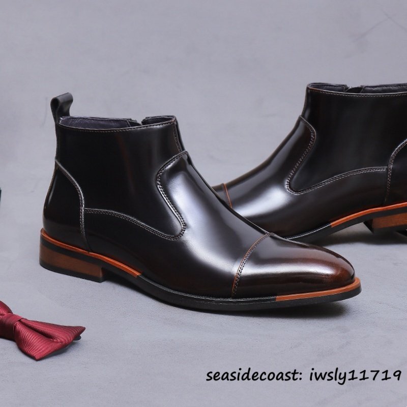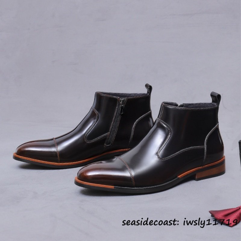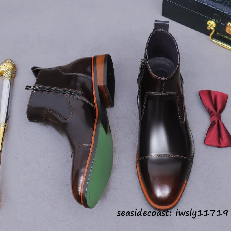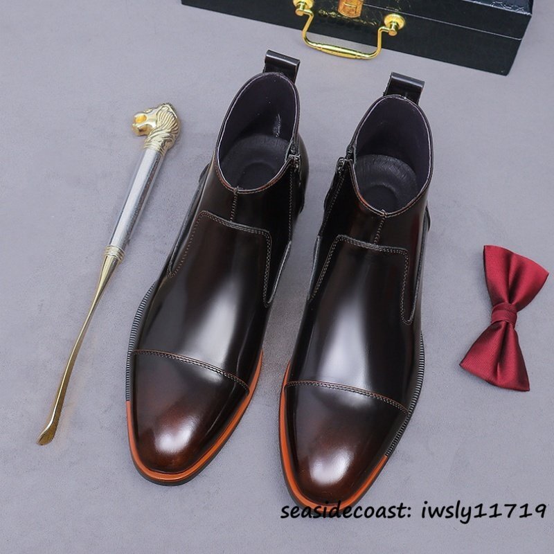 定価16万■メンズブーツ チェルシーブーツ 本革 高級牛革 レザーブーツ 皮靴 ショートブーツ マーティンブーツ 光沢 新品 ブラウン 25.5cm