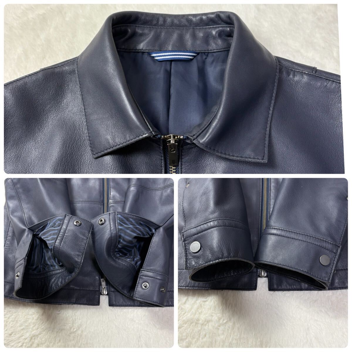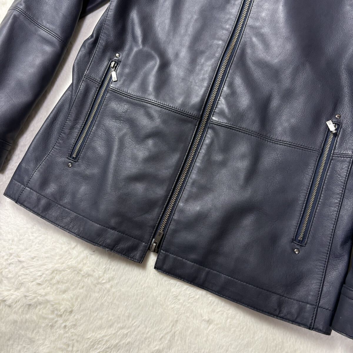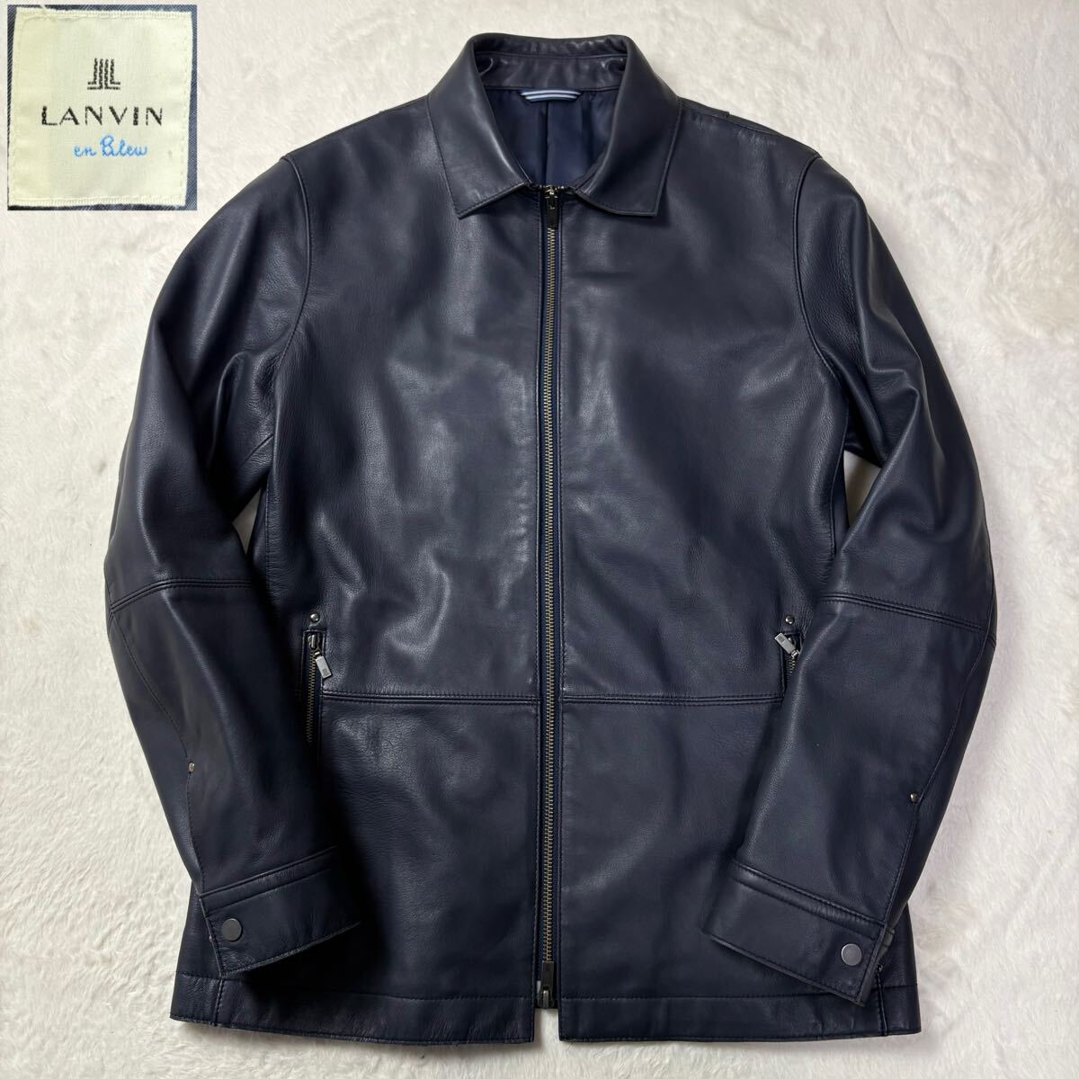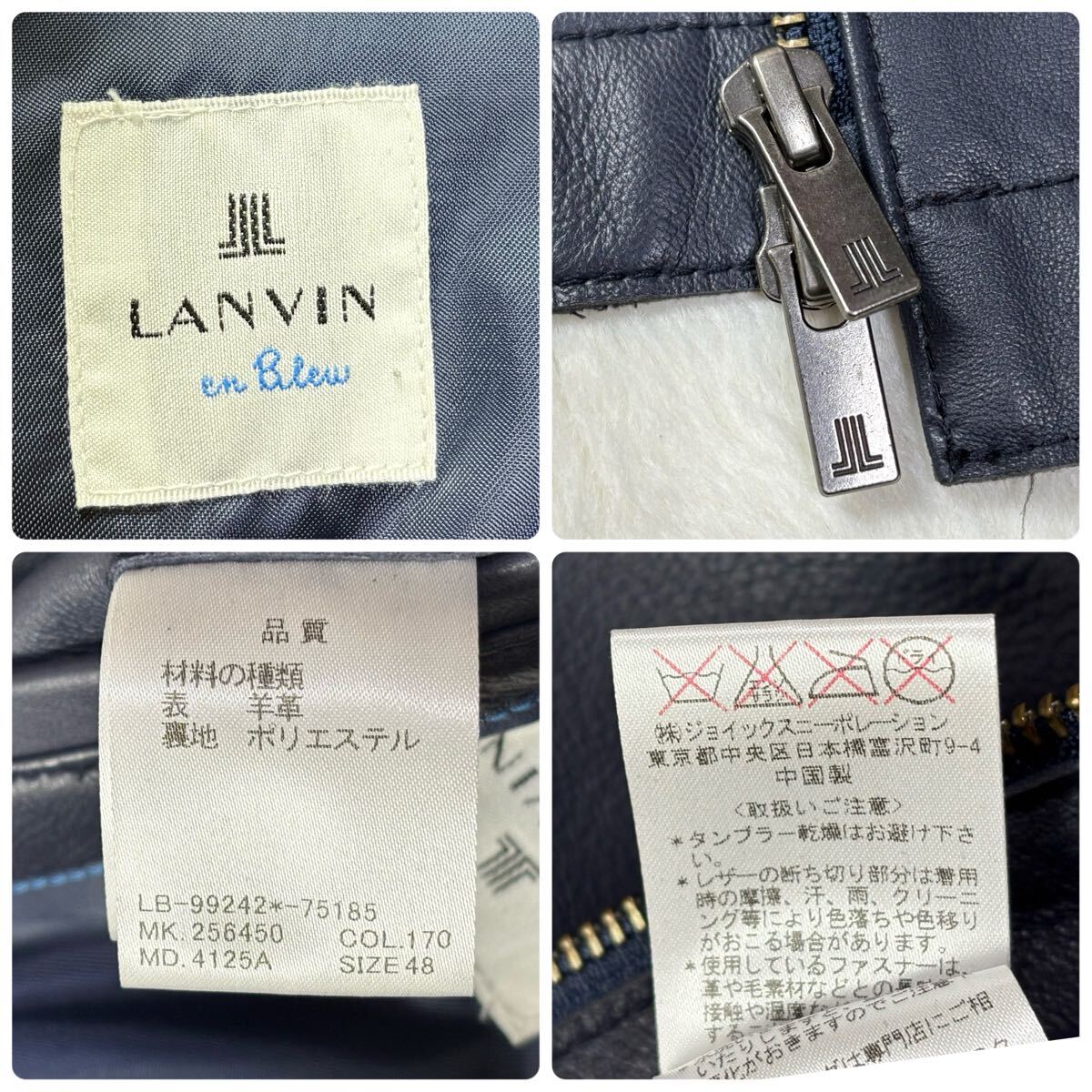 LANVIN en Blue 【美品 Lサイズ ラムレザー ブルー wジップ】ランバン ライダースジャケット ブルゾン レザージャケット 羊革 本革 刻印 48