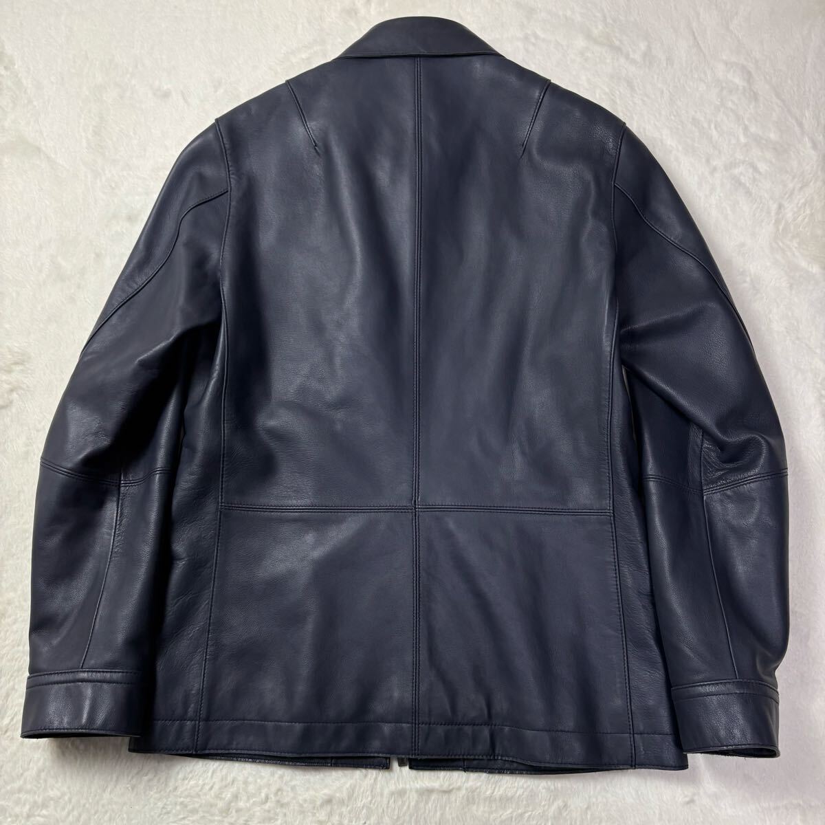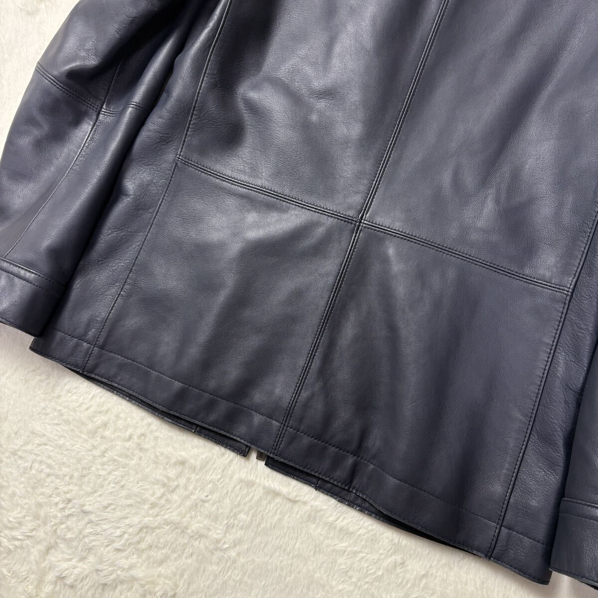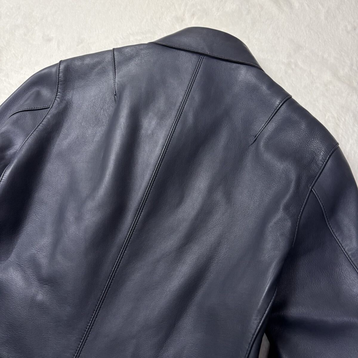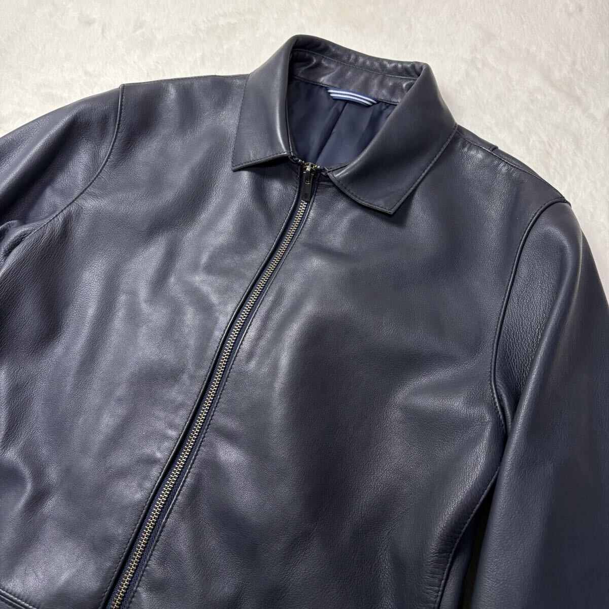 LANVIN en Blue 【美品 Lサイズ ラムレザー ブルー wジップ】ランバン ライダースジャケット ブルゾン レザージャケット 羊革 本革 刻印 48
