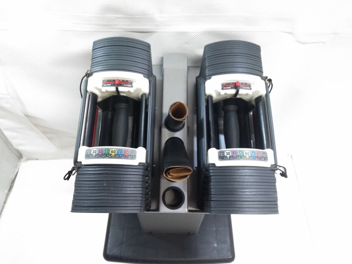 【サイズ/重さ】 ・ダンベル サイズ:(約) 高さ16.6 × 幅40.5 ×奥行17.5 cm×2点 ・ダンベル 重さ:90ポンド (約41キロ)×2点 ・スタンド サイズ (約)高さ71.5(ダンベルセット時81.0) × 幅56.0 ×奥行45.0 ㎝ 出品は画像にある物が全てになります。 商品の状態は画像を参考にお願い致します。 ※あくまで商品の状態は個人的判断によるものです。 細かな傷等を気になさる方はご入札をお控えください。 中古品である事を御理解戴き入札を御願い致します。 その他不明な点は画像・メーカーHPより御確認・御判断を御願い致します。 | ||||