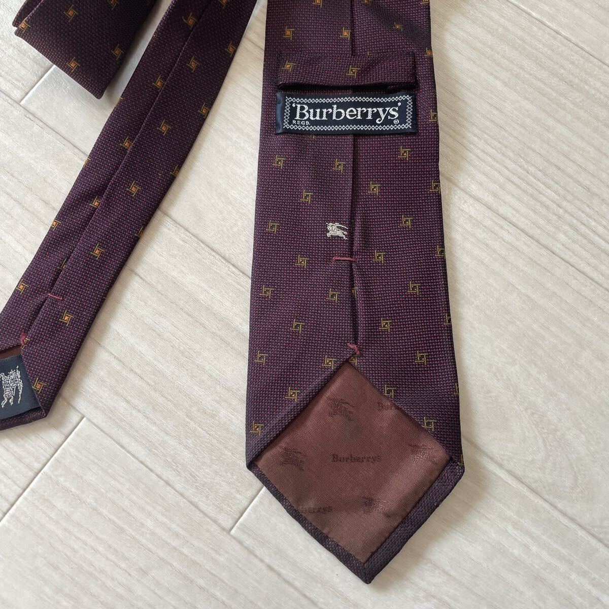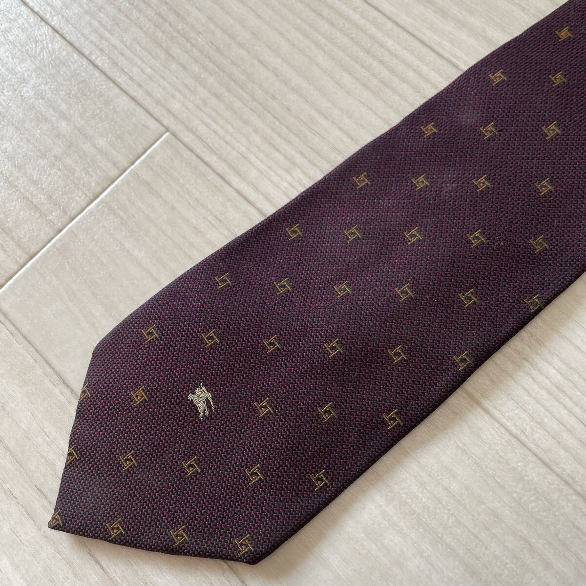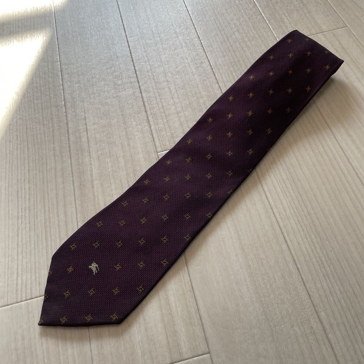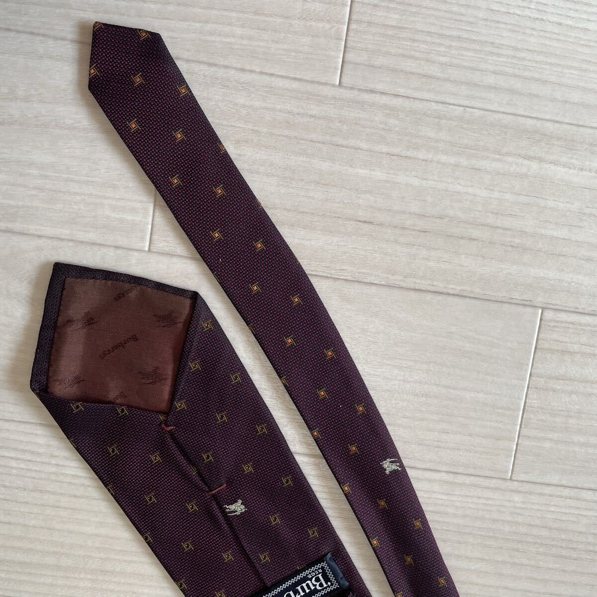 紫色のシルクネクタイ、Burberrysのロゴ刺繍入り。