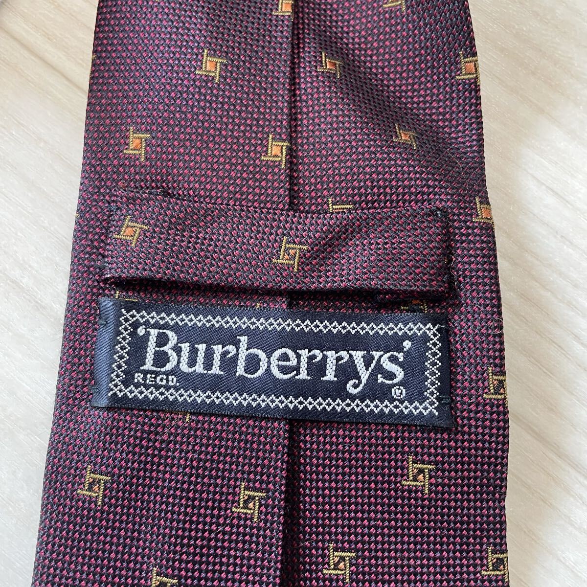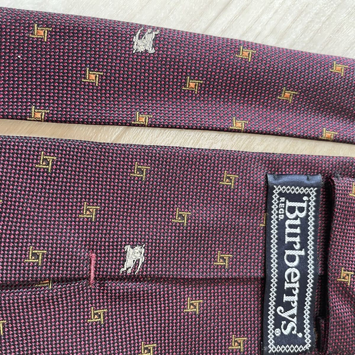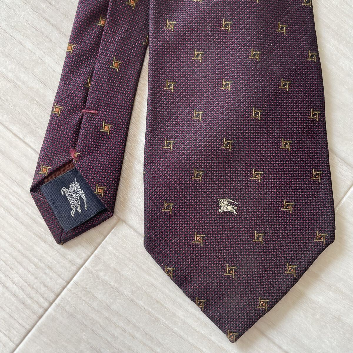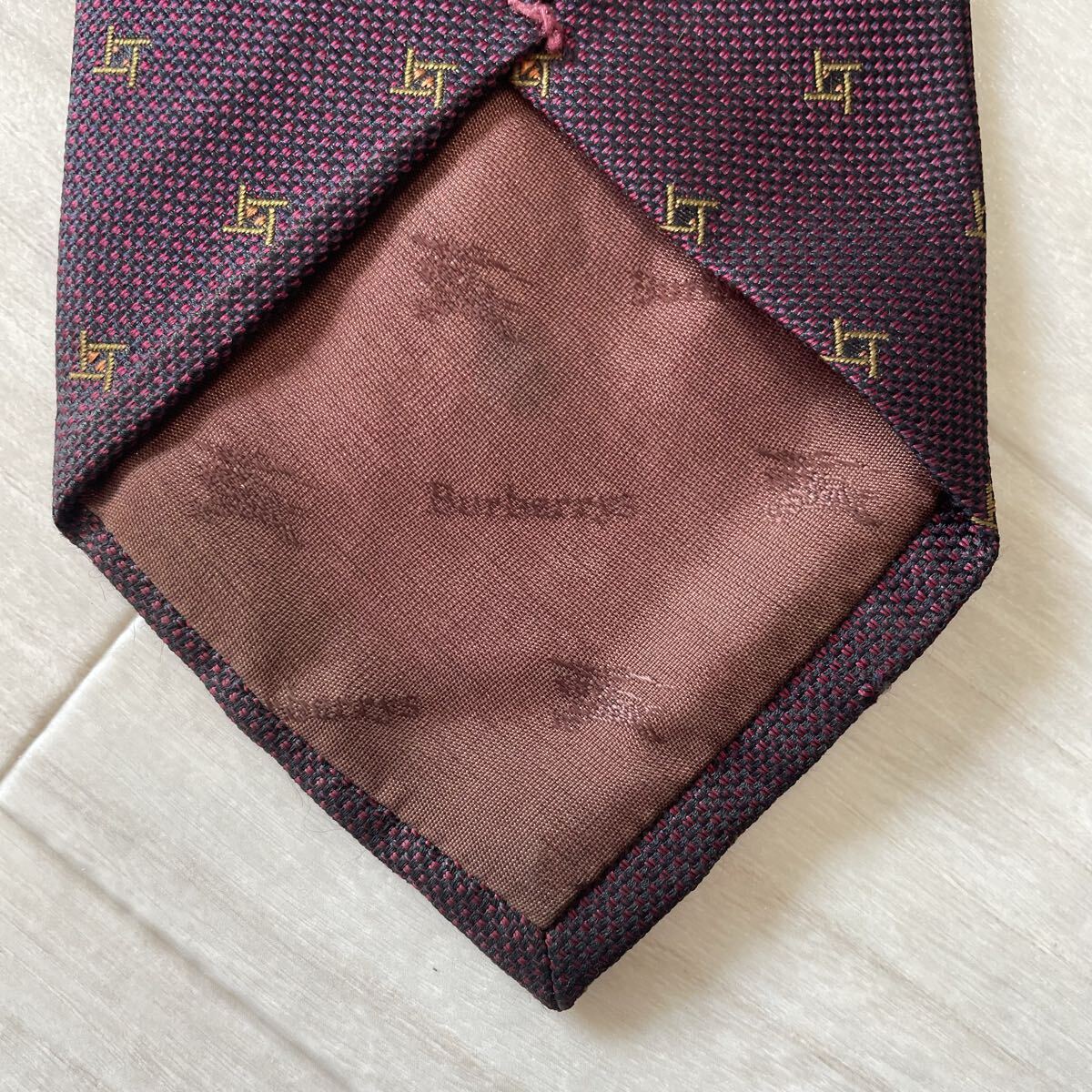 紫色のシルクネクタイ、Burberrysのロゴ刺繍入り。