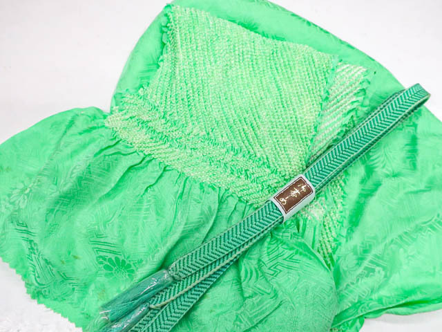 リサイクル商品のため、帯揚げに少ししぼのびとしみ、帯締めにくすみがございますが、ご使用頂けると存じます。 |