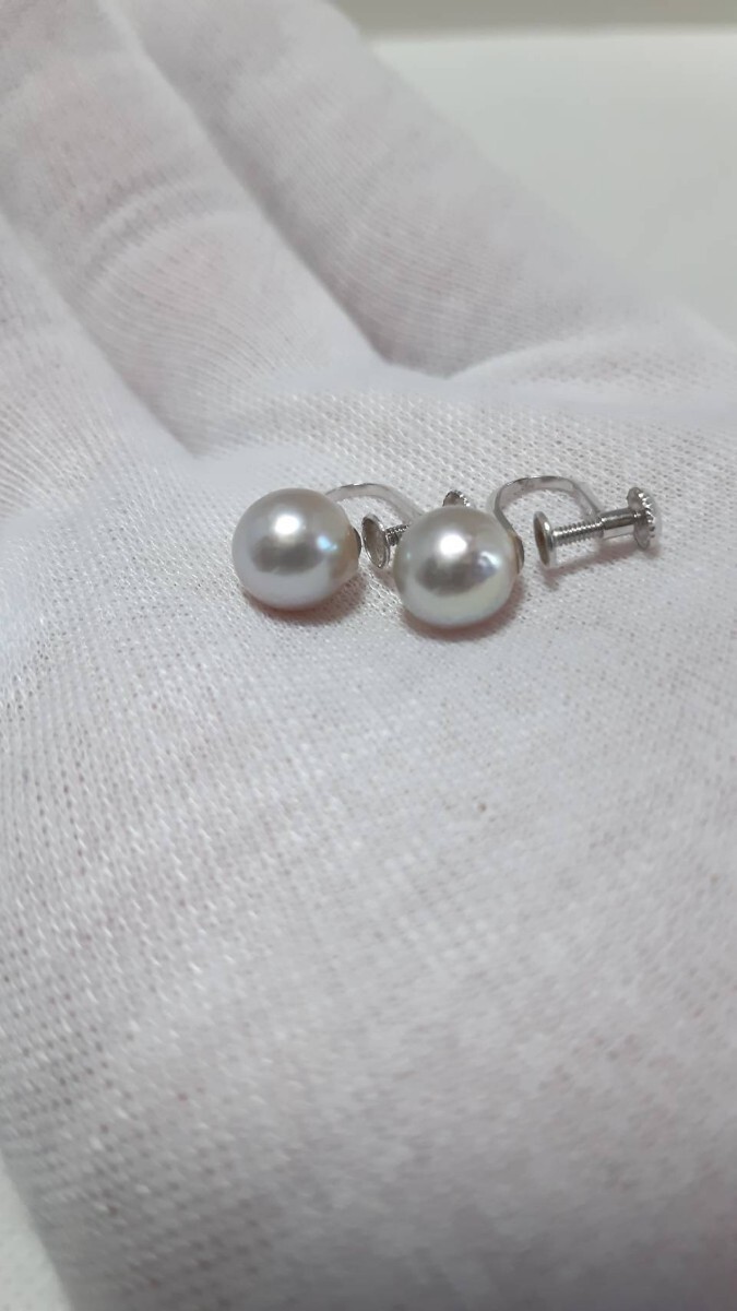 真珠 イヤリング/ K14WG/ ホワイトゴールド/ アクセサリー/8mm