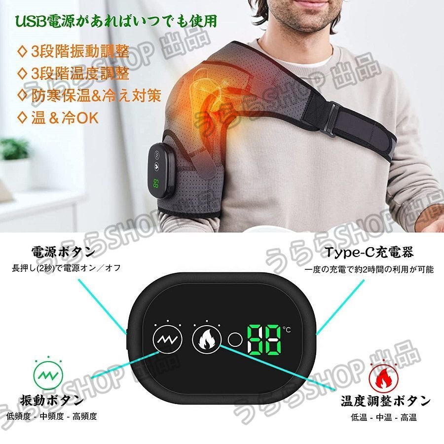 肩用サポーター マッサージ付き マッサージャーヒーティングショルダーラップ 電動ショルダーヒーティングパッド 関節脱臼 充電式 xhw0168