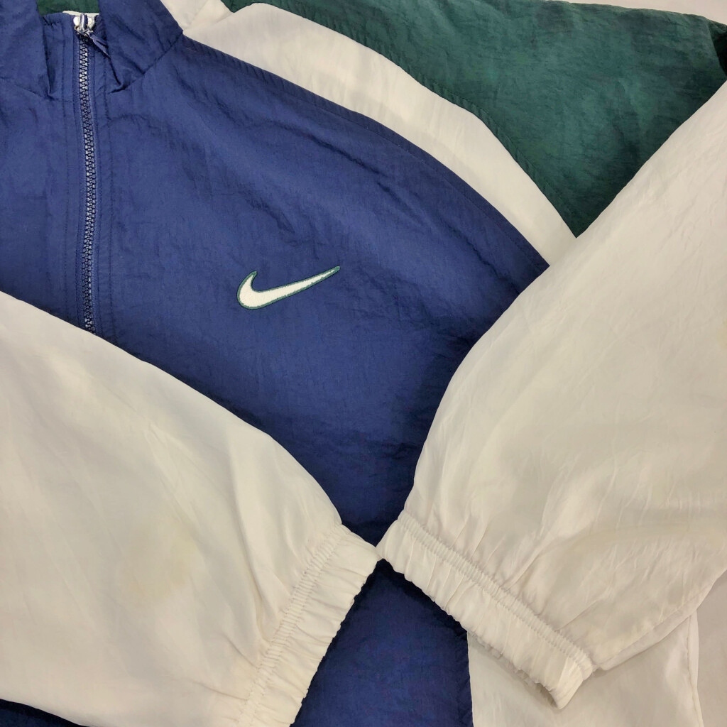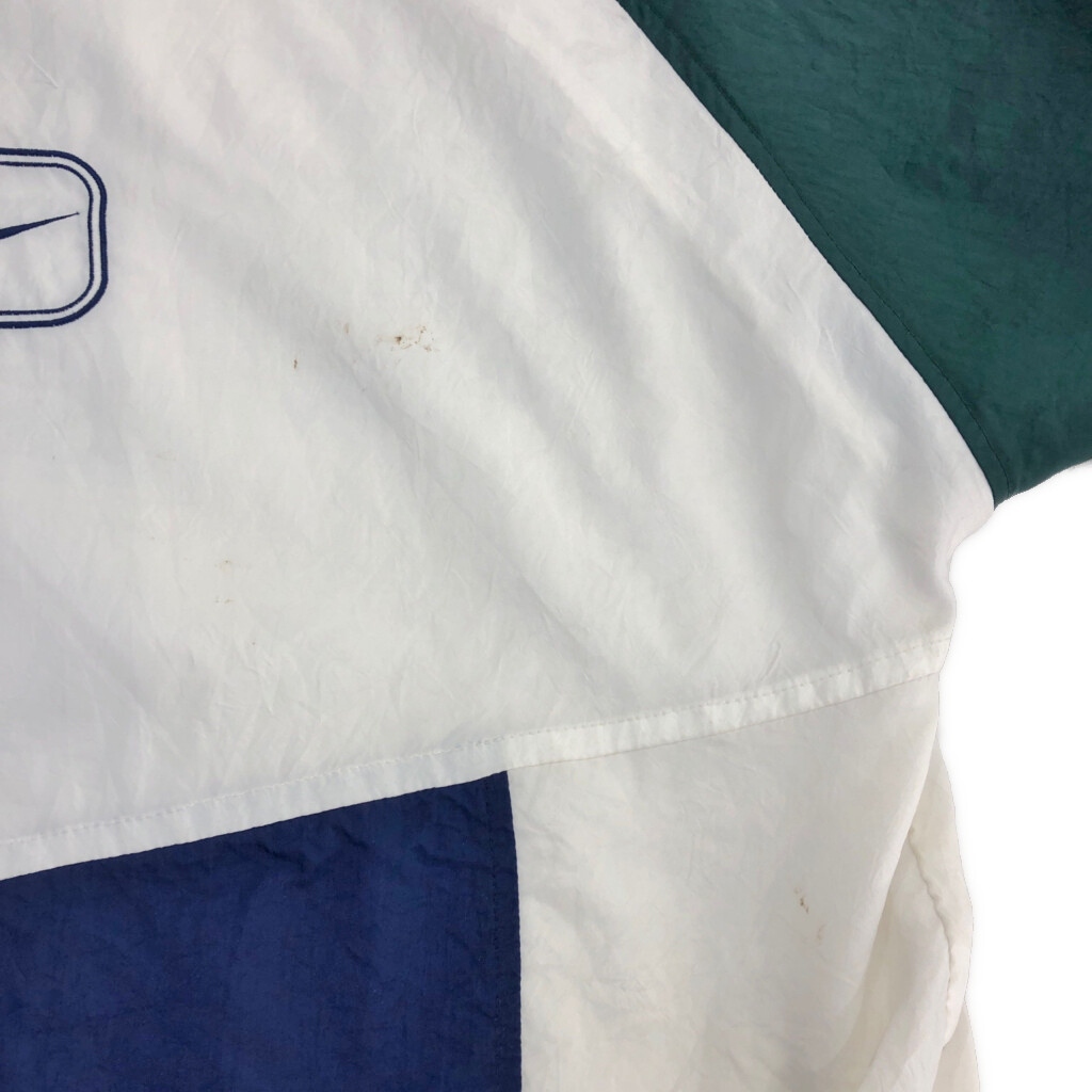 | 【商品管理番号】 U4981 【ブランド】 NIKE/ナイキ 【サイズ】 M 【実寸サイズ】 着丈:約74cm 身幅:約63cm 裄丈:約84cm 袖下丈:約49cm 【主な素材】 表地 : ナイロン 裏地 : 13897 【色】 ネイビー 【仕様】 90年代 ウエストドローコード スポーツ 【状態】 汚れ:全体 | |||