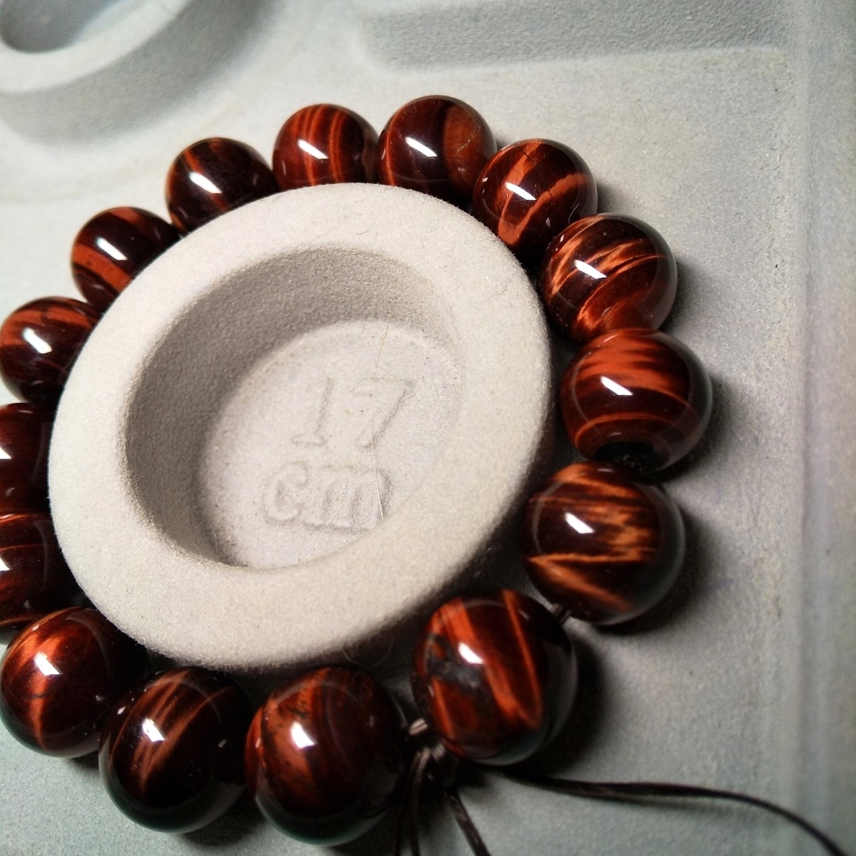 微調整として、レッドタイガーアイをはじめ、お好きなパワーストーン12㎜玉か、10㎜玉を入れたり入れ替えたりしてサイズ対応致します。