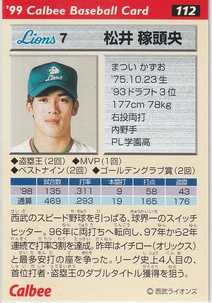 ●1999カルビー【松井 稼頭央】 プレ版:金箔押サインパラレル No.112:西武