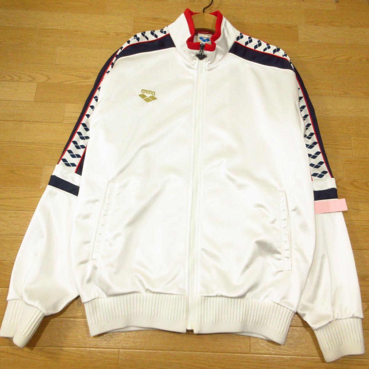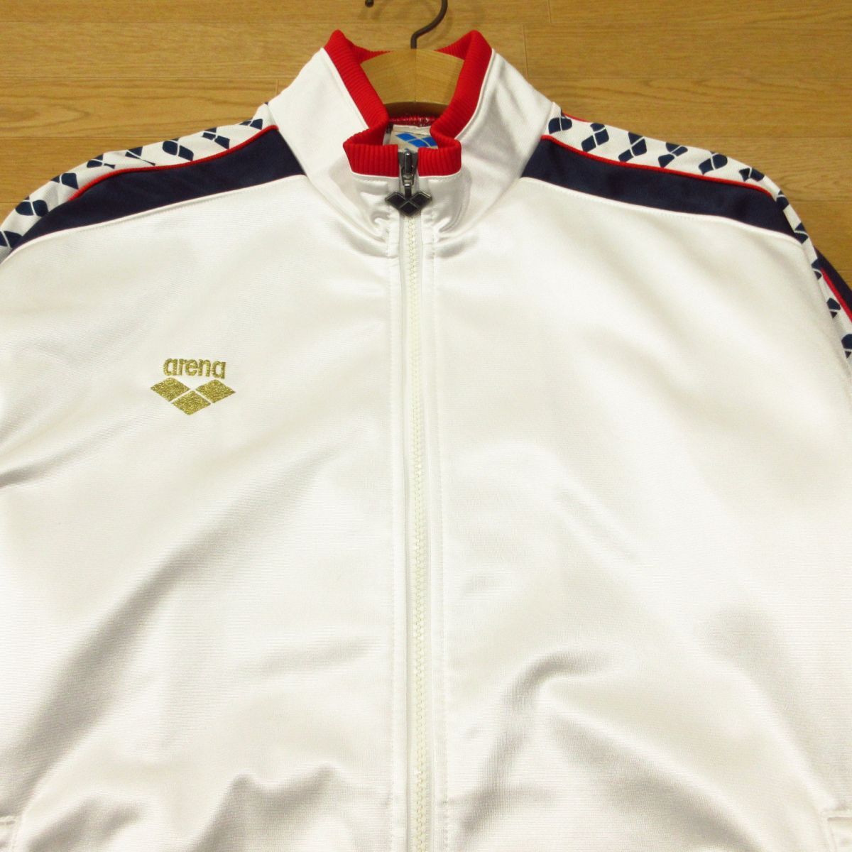 ◎東京 国分寺高校 水泳 arena アリーナ ジャージ トラックジャケットユニフォーム 裏起毛 支給品 実使用 メンズ 白 Lサイズ◆AA5300
