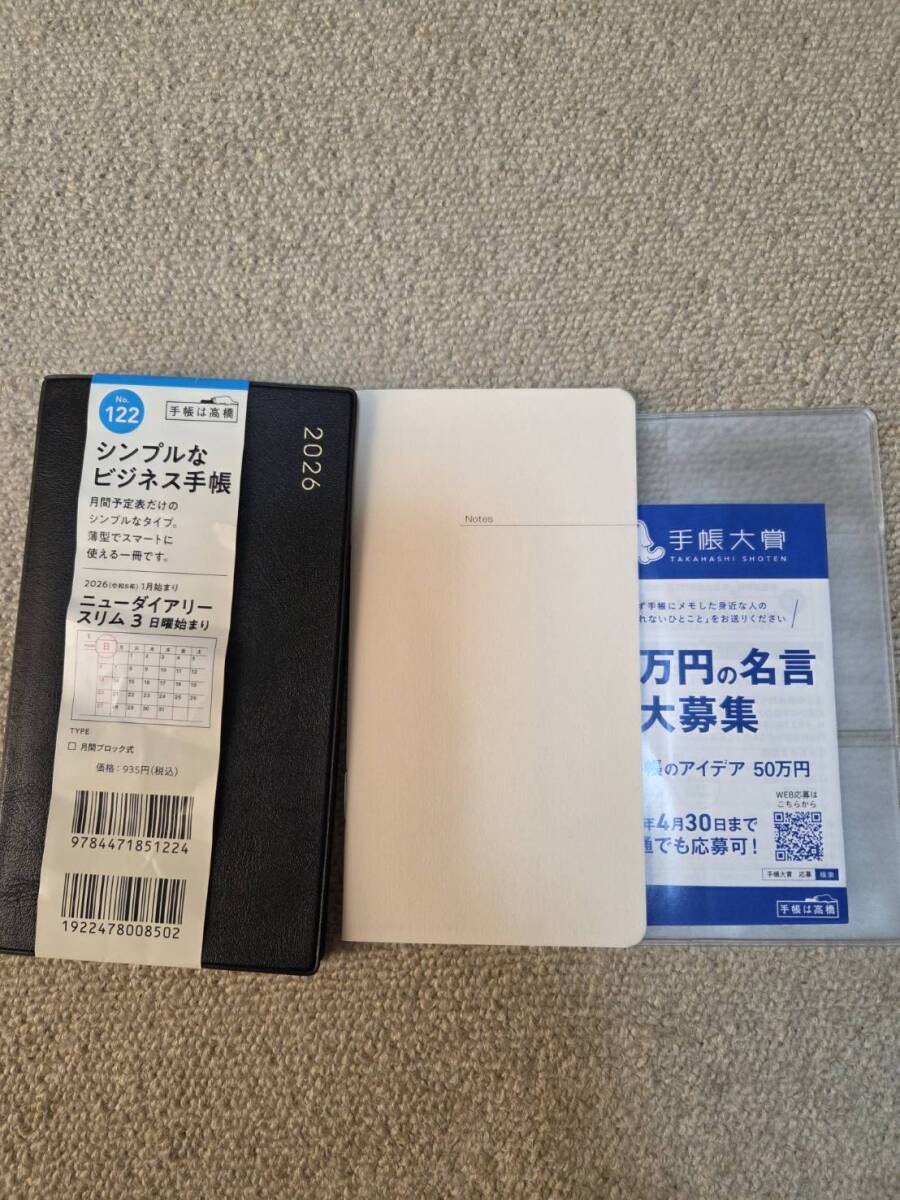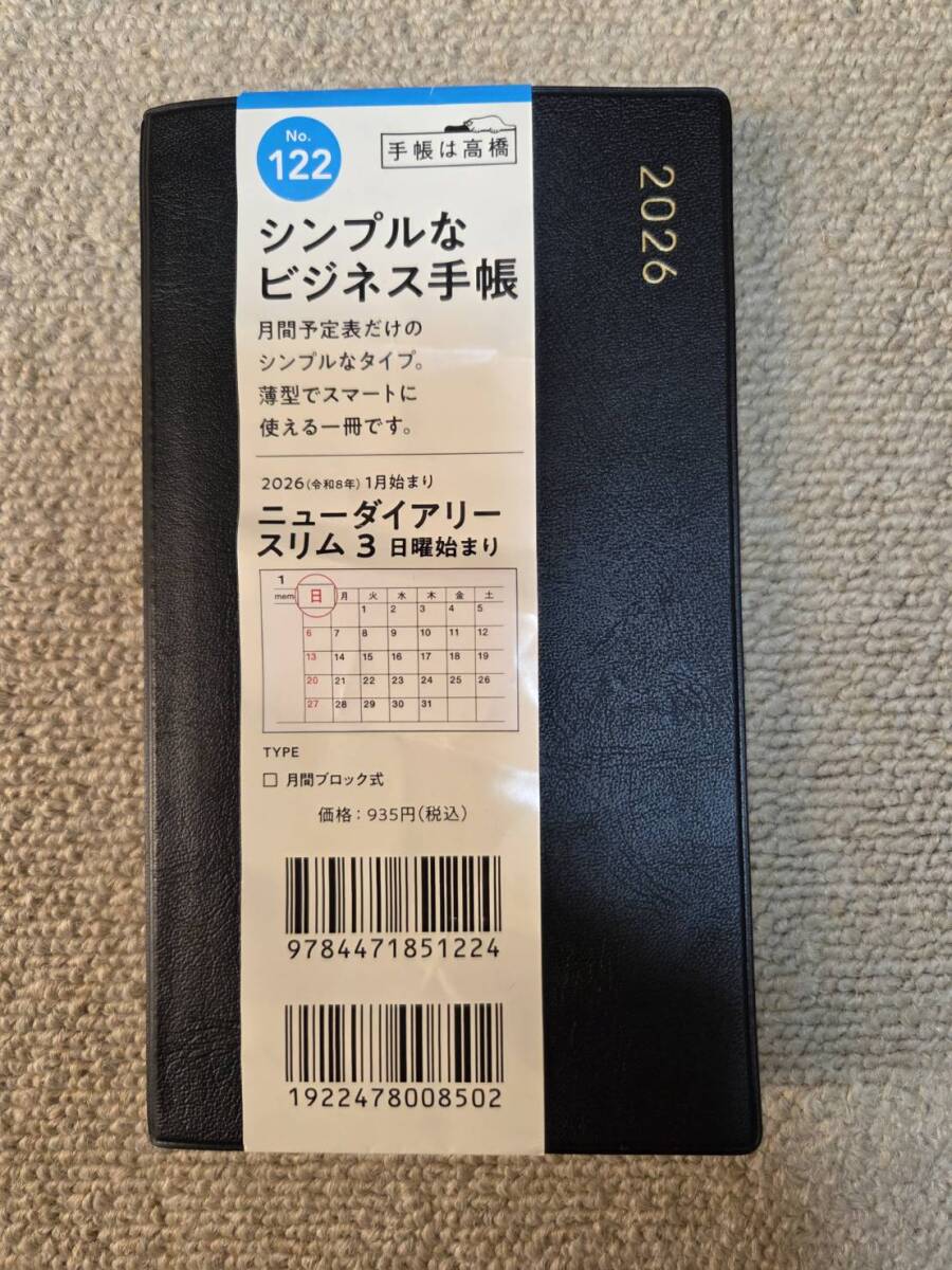 ●帯に折れあり●未使用 No.122ニューダイアリー スリム 3 手帳 高橋書店 2026年日曜始まり月間ブロック式マンスリー