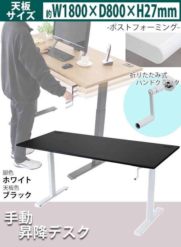 | 商品名 | 送料無料 昇降デスク 手動 W1800×D800×H735〜1185mm 耐荷重約70kg(脚部) スタンディングデスク 上下昇降デスク 手動昇降 上下昇降 昇降デスク 高さ 調整 エルゴノミクス オフィスデスク 昇降式デスク 手動 昇降 昇降テーブル 昇降式テーブル 手動デスク hk01180stl |