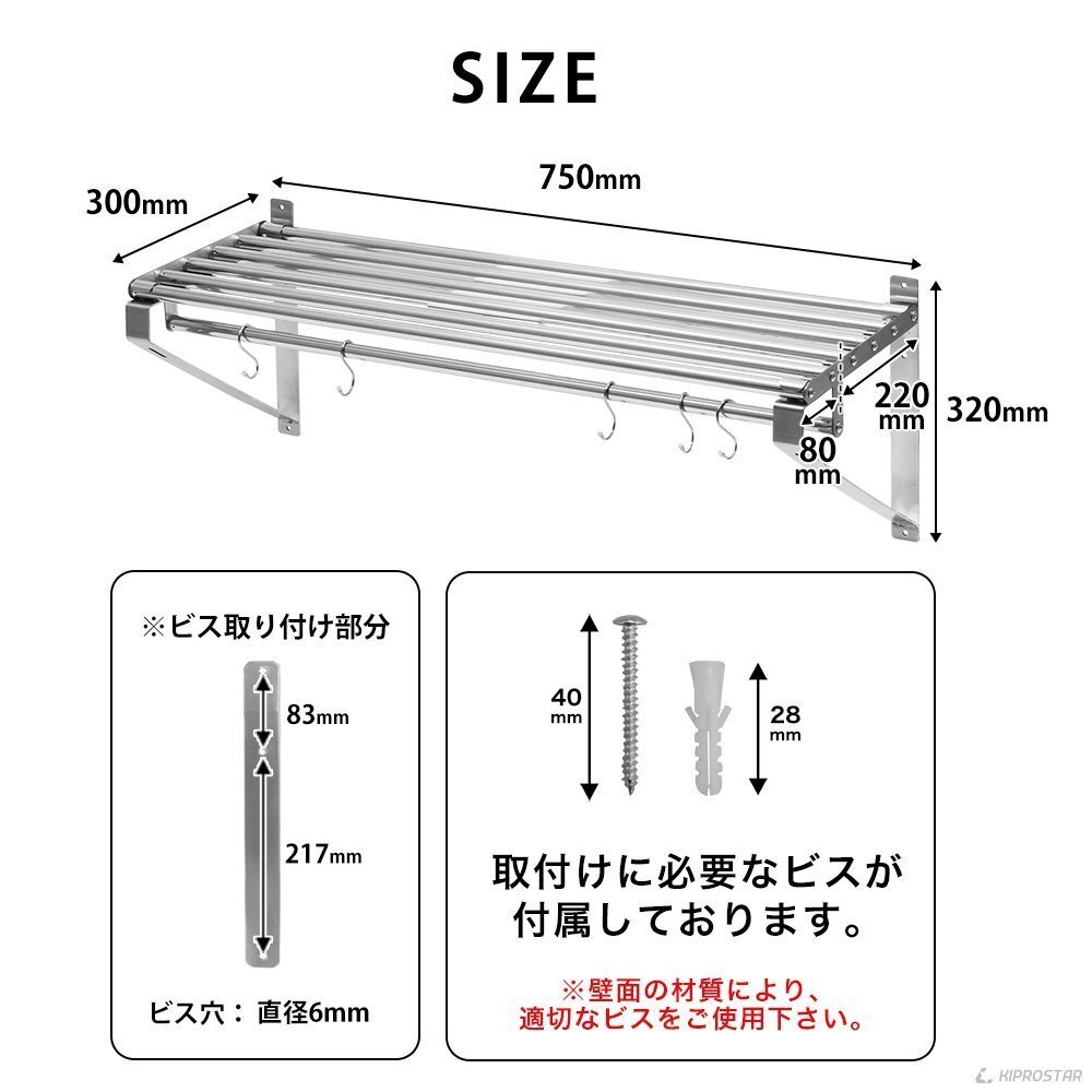 | 外形寸法(mm) | 約750幅※x300奥行x320高さ ※(両端ビスを含むと幅760mm) |