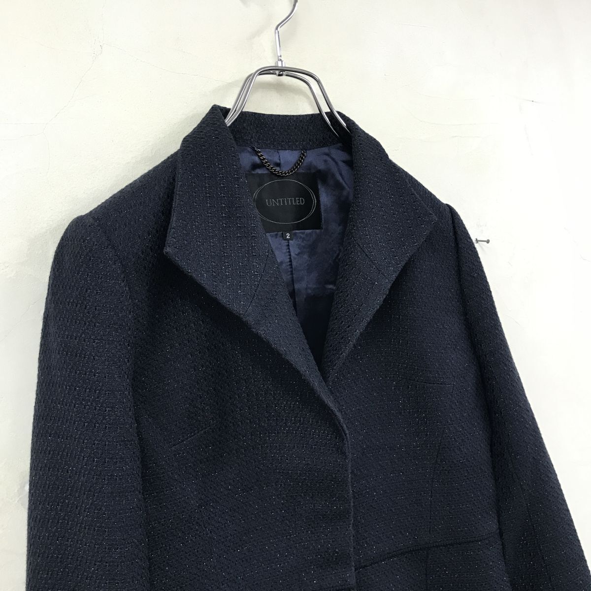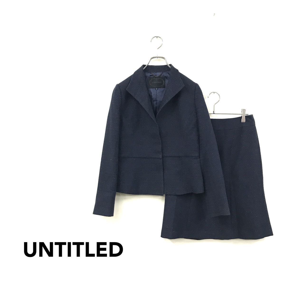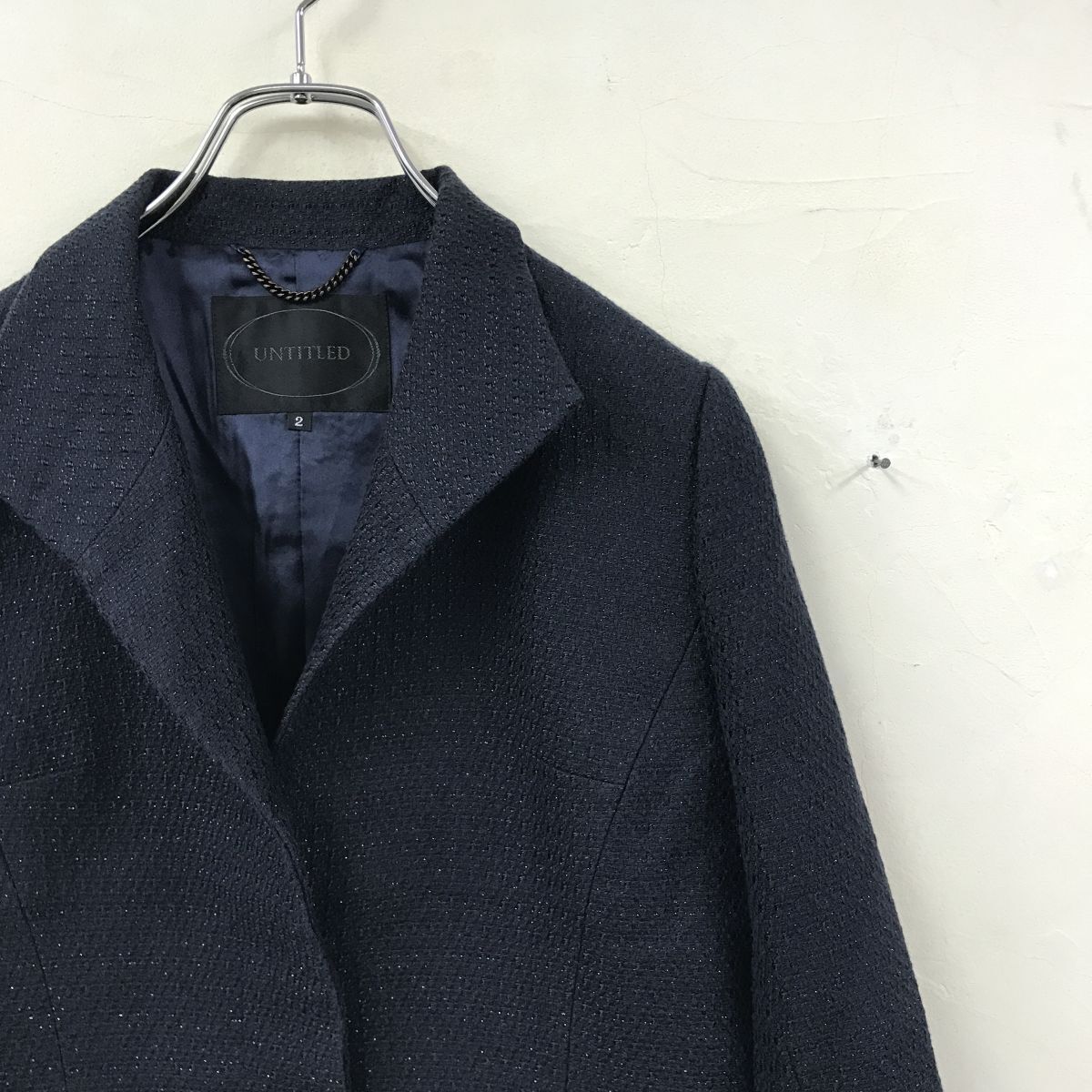2N1985-G◆ UNTITLED アンタイトル ラメブレンドセットアップ フォーマルジャケット ミドルスカート 台形 ◆ size2 ネイビー ポリエステル
