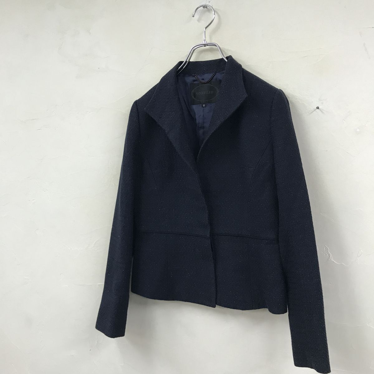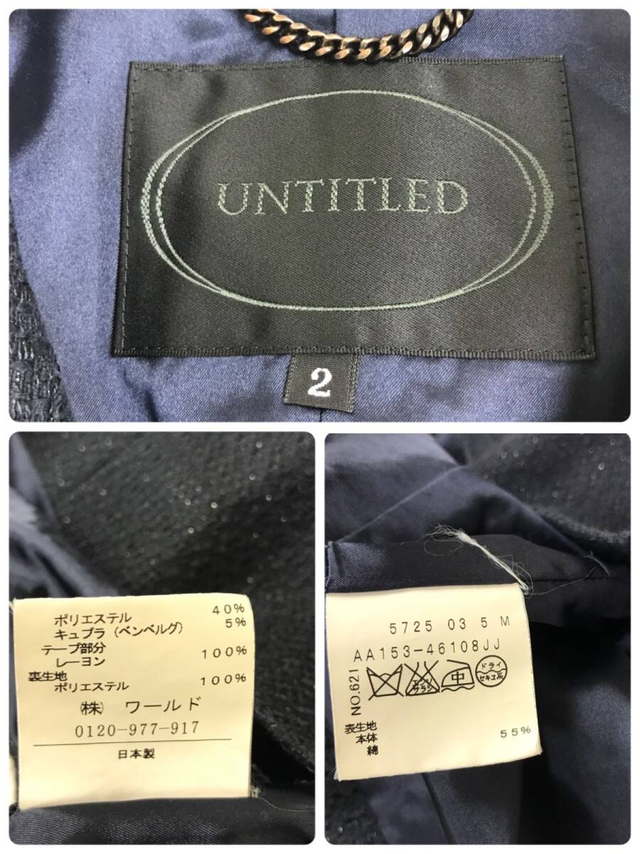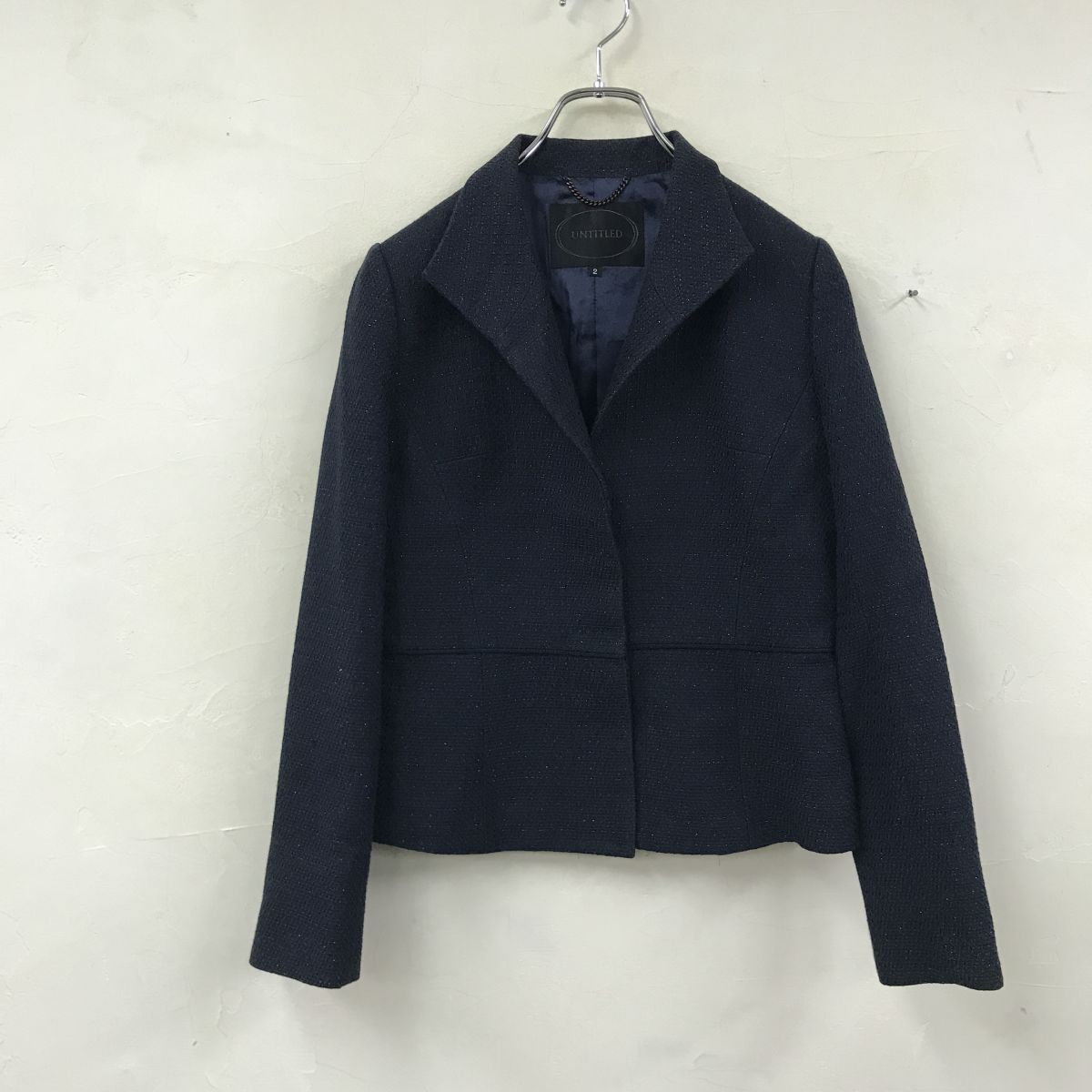 2N1985-G◆ UNTITLED アンタイトル ラメブレンドセットアップ フォーマルジャケット ミドルスカート 台形 ◆ size2 ネイビー ポリエステル