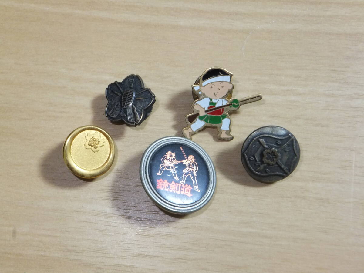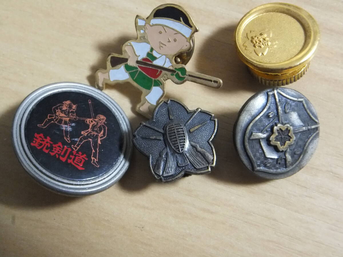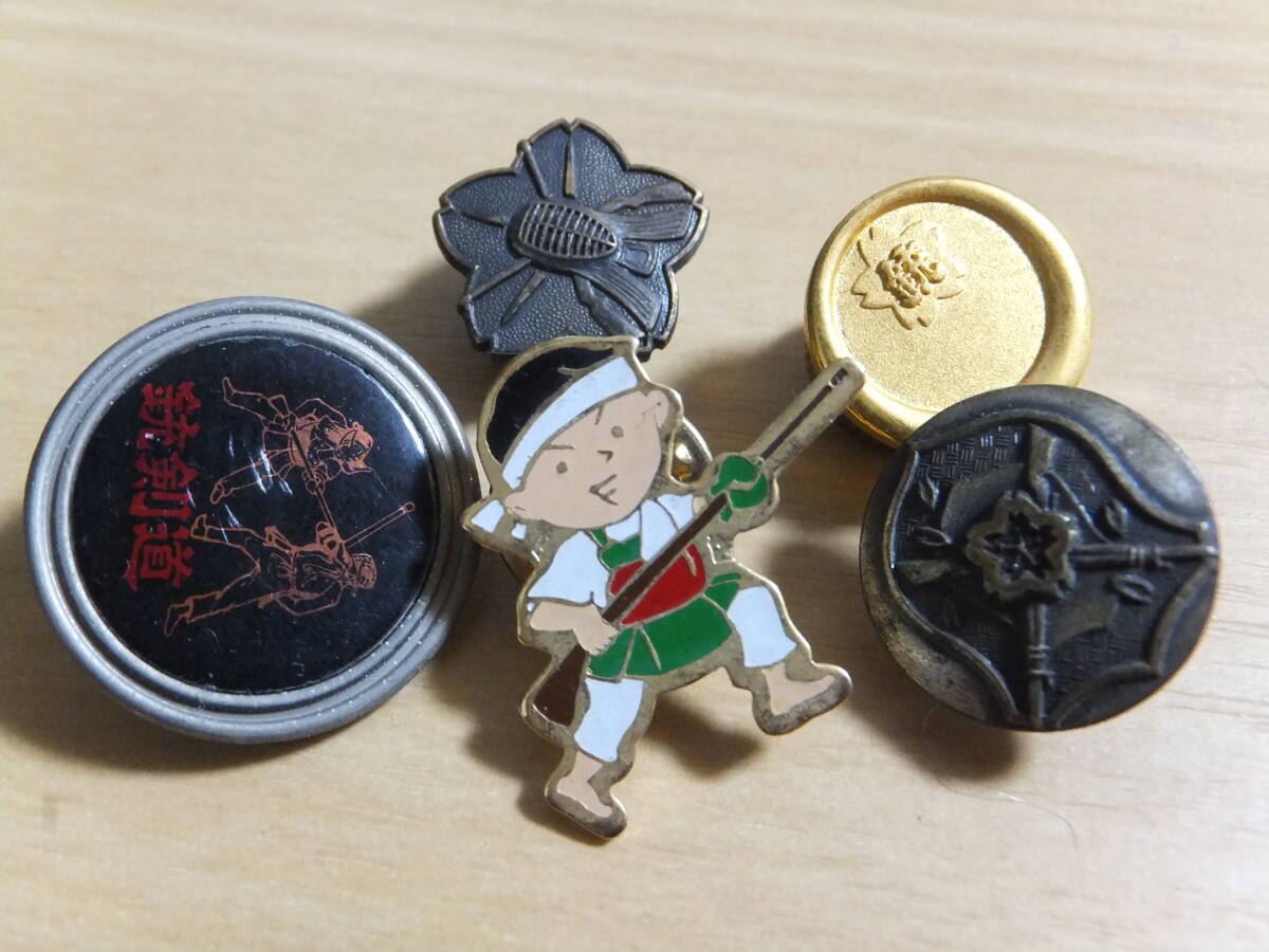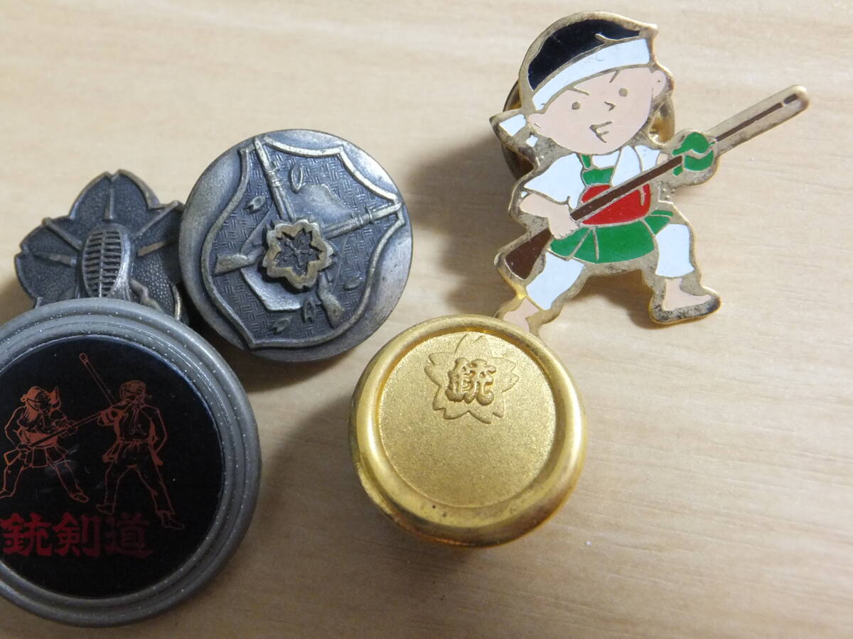 中古 銃剣道 系 ピンズ ピンバッジ 十勝支部会員章 全日本銃剣道連盟 等 昭和 レトロ 留め具はスクリューナット(ねじ式)やバタフライクラッチ 計5個セット