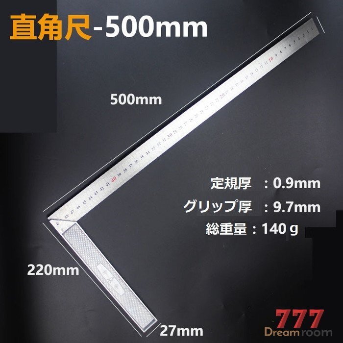 500mm L型 スチールスケール 差し金 曲尺 バークランプ 直角 定規 水平器