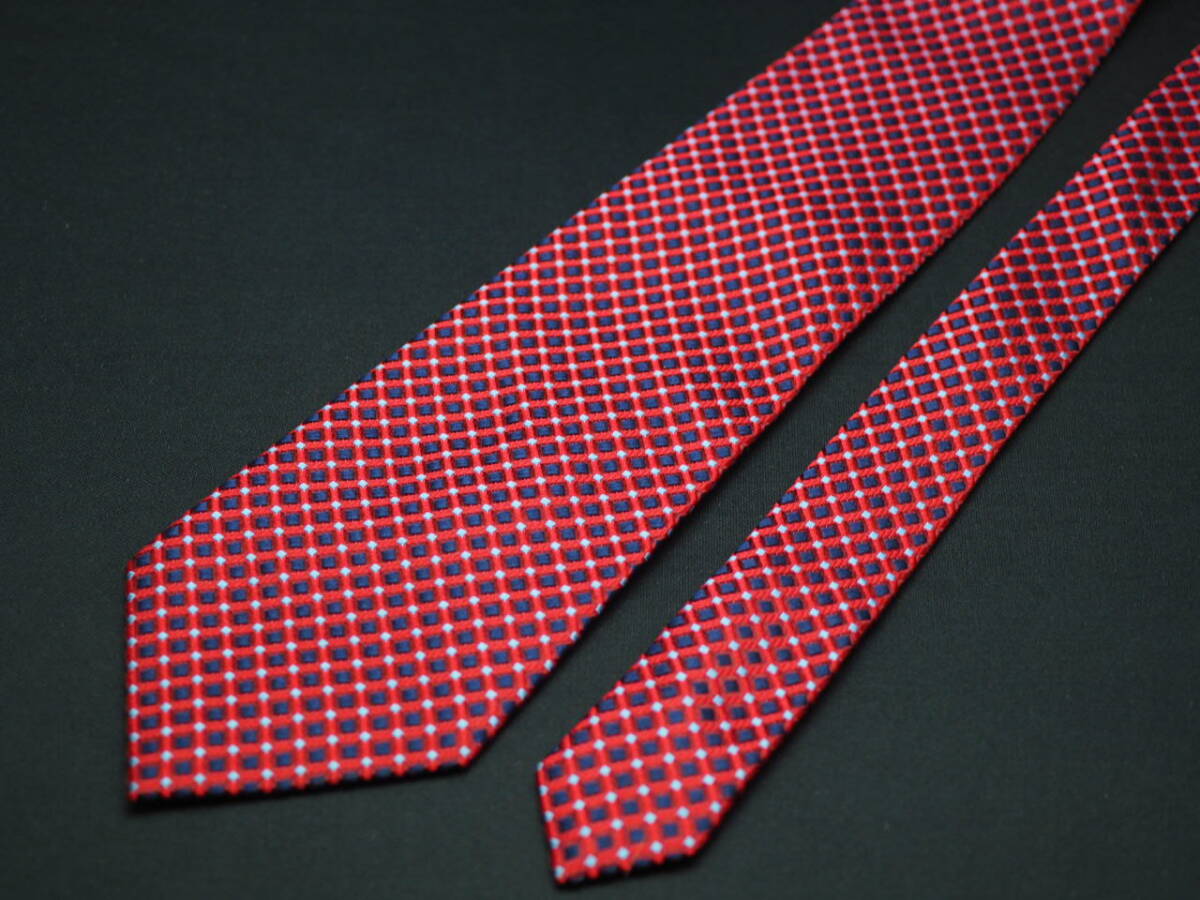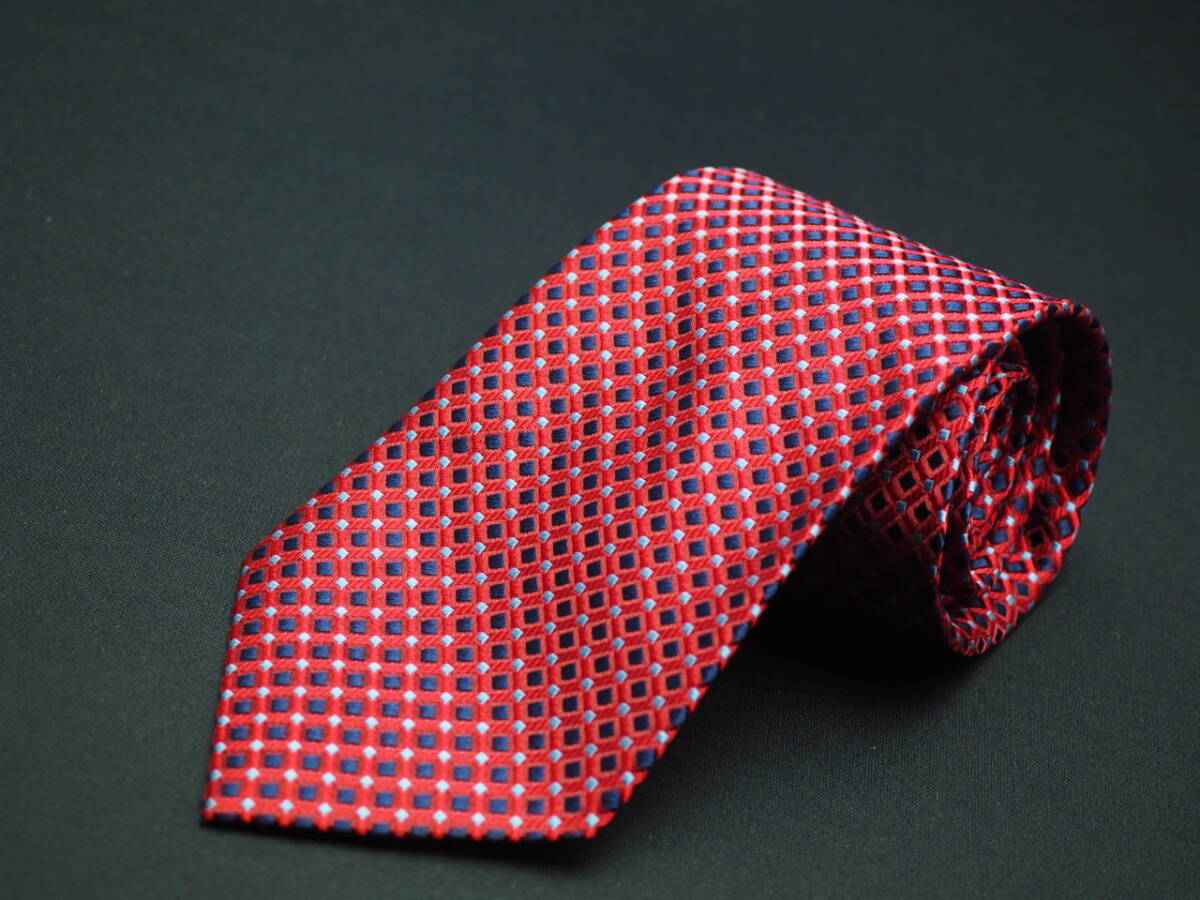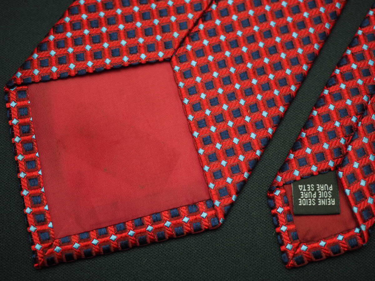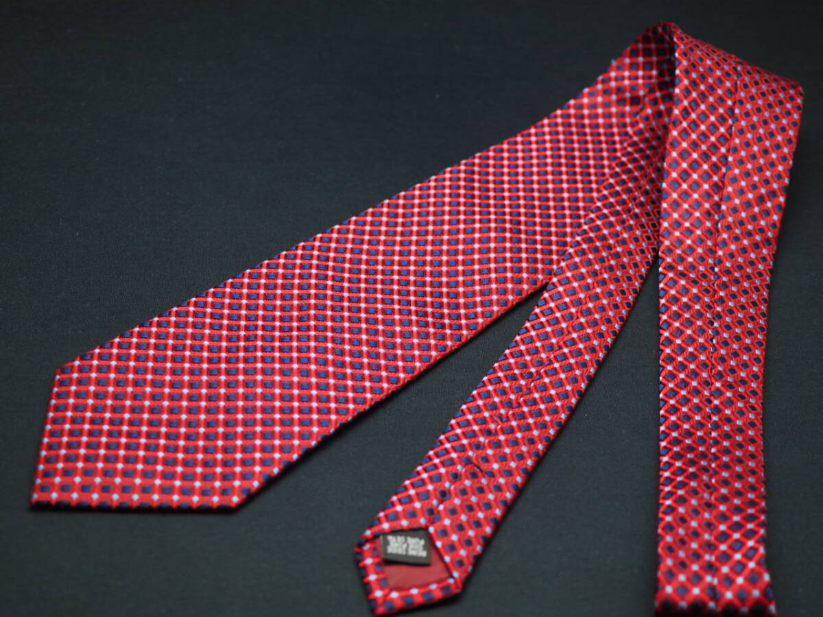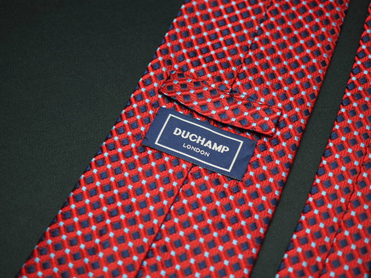 美品【DUCHAMP ドゥシャン】 G1893 英国製 赤ネイビー系 SILK ブランド ネクタイ 古着 良品 転売 仕入
