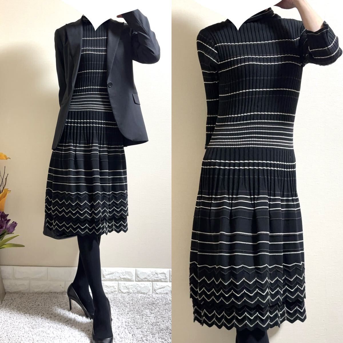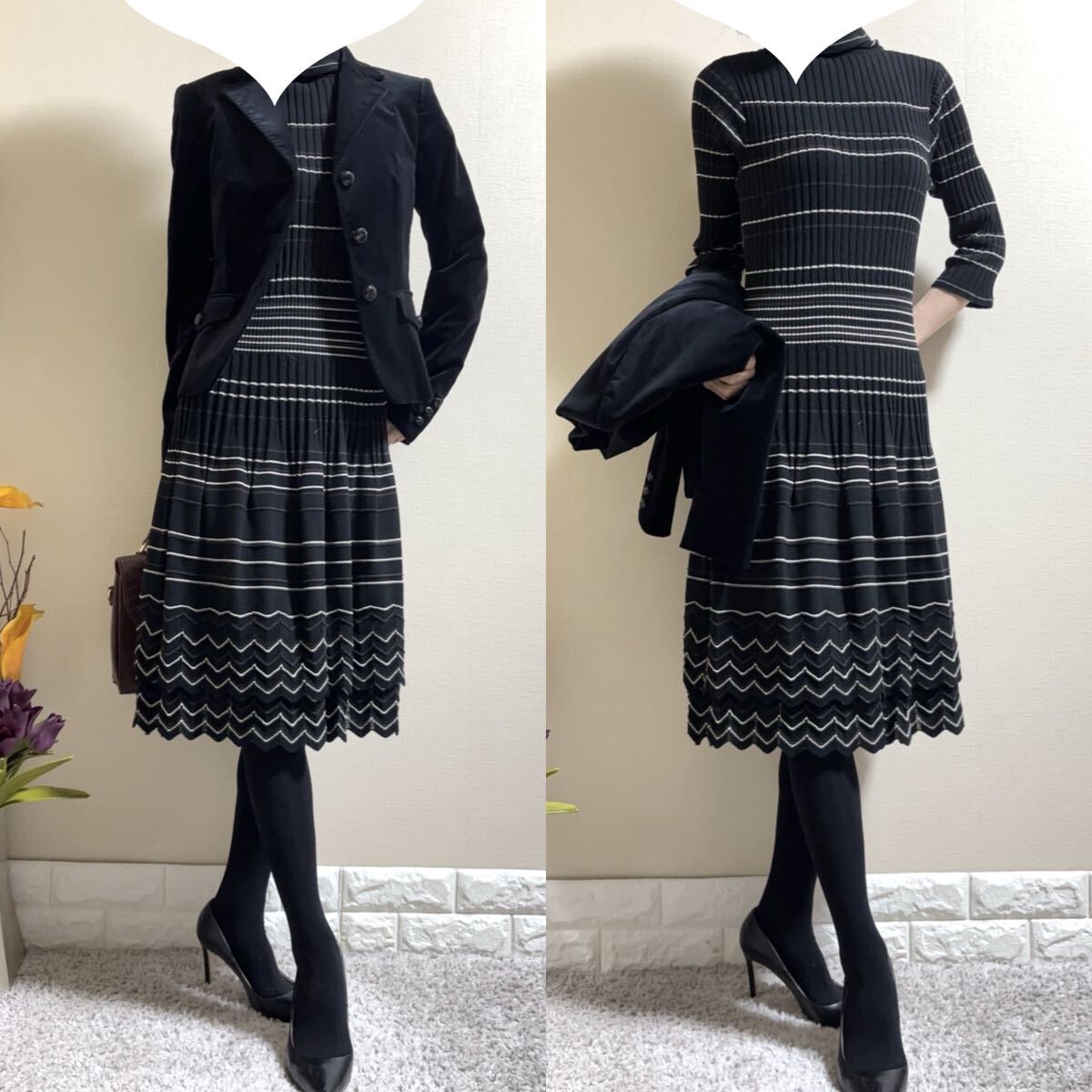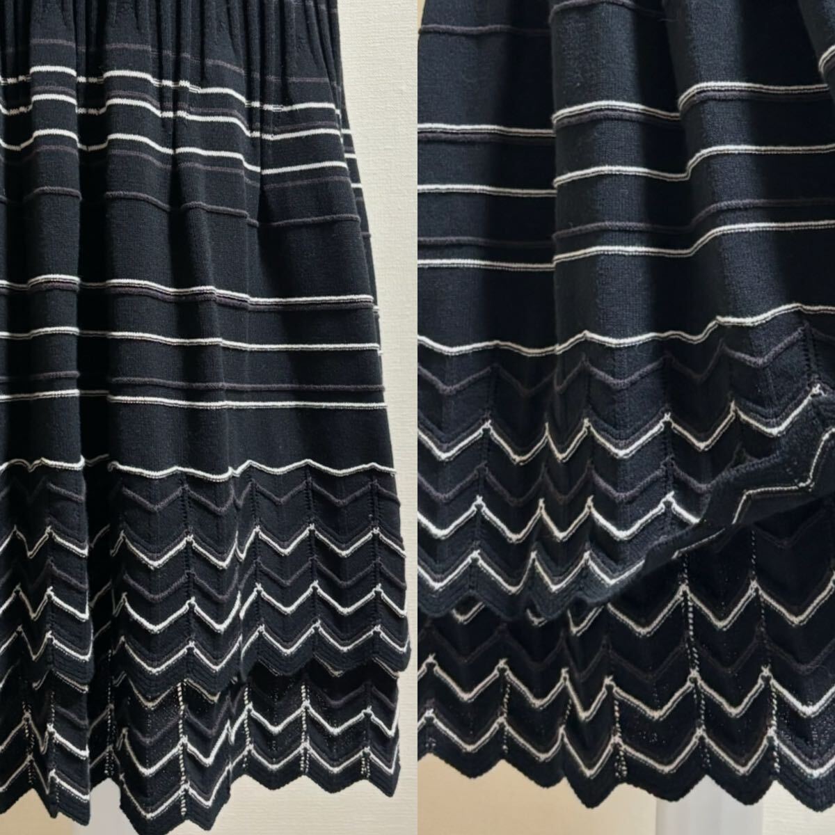 ウエスト部分のランダムボーダー織り柄は目の錯覚効果で細っそり華奢に魅せます♪